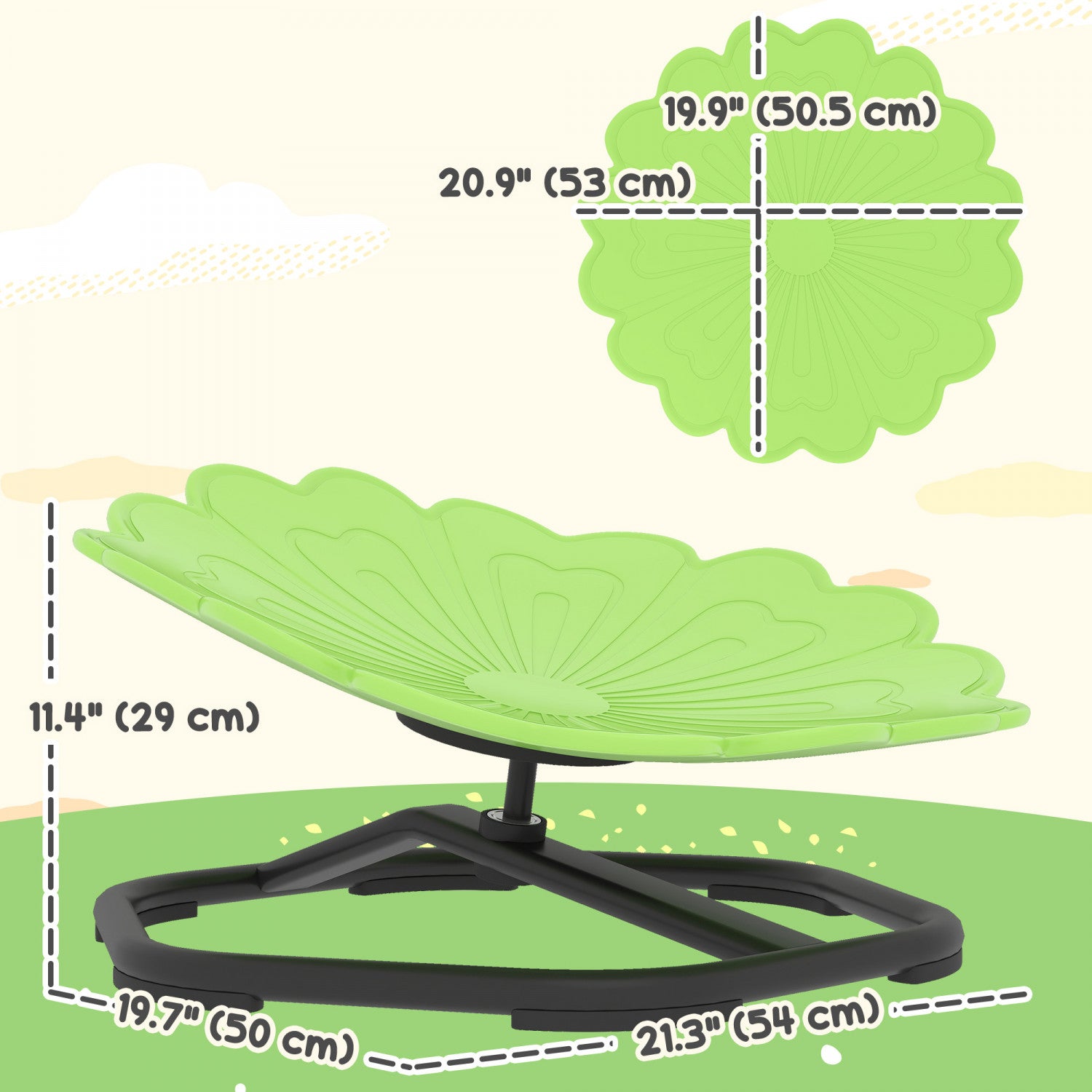 Qaba Kids Swivel Chair, Flower-Shaped Sensory Spinning Chair for Training Body Coordination, Non-Slip Sit and Spin Wobble Stool for Kids Aged 3-6, Green