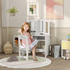 Qaba Kids Vanity Set, 2 In 1 Makeup Dressing Table Writing Table Pretend Play With Mirror Stool, Storage Shelf, Detachable Top, For Little Girls Aged 3-8 Years, White