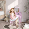 Qaba Kids Vanity Set With Mirror And Stool, Makeup Vanity Table For Children 3-6 Years Old, With Drawer Storage Boxes, Cat-design