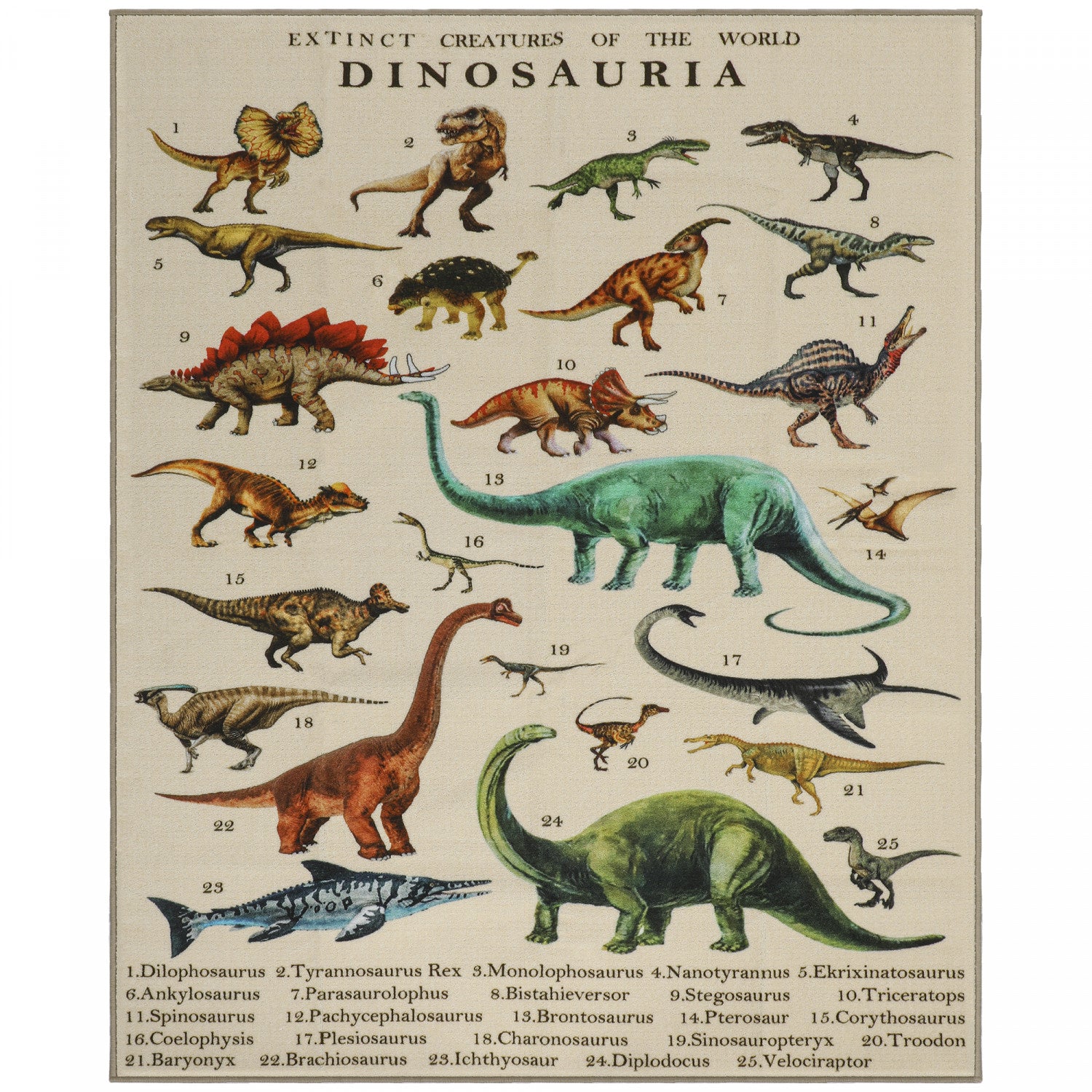 Qaba Large Play Mat, 79" x 59" Educational Polyester Crawling Mat, Non-Slip Nursery Rug, Rolls Up for Storage, for Toddlers, Living Room and Bedroom with Dinosaur Pattern, Khaki