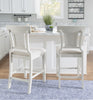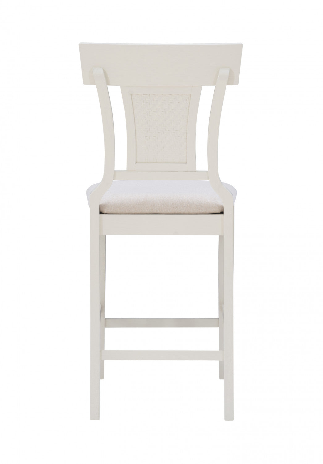 Bring a hint of the countryside into your kitchen with this farmhouse style counter stool. A solid wood frame and footrails provide comfort and stability, while the swooping sides and handwoven rattan center round out the design with elegant detail. The seat is upholstered in 100% polyester fabric that mimics the look of beige linen and is easy to maintain. With a seat height of 26 inches, this stool is perfect for any counter standing at 35” to 39".