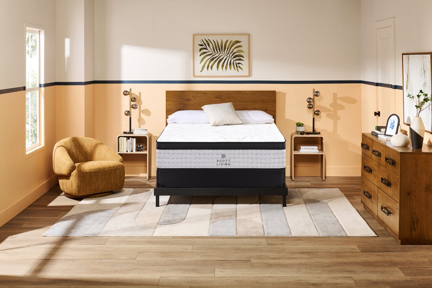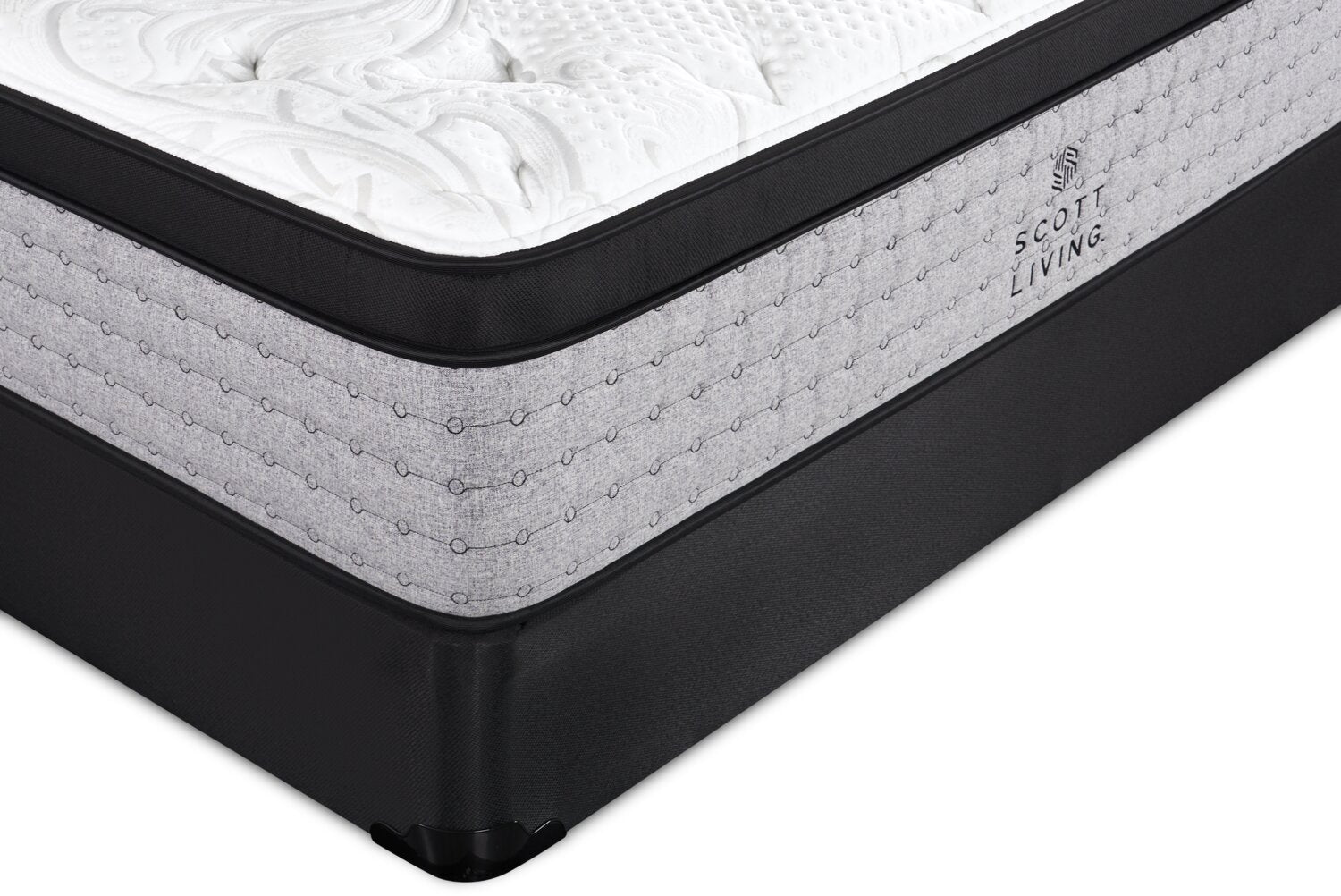 This thoughtfully designed Scott Living Berwick collection from Drew and Jonathan Scott features a medium euro top mattress. Cool-to-the-touch, heat-dissipating fabrics and pressure-relieving gel visco foam help regulate temperature for a more refreshing night’s sleep. The reinforced centre third provides extra support where your body needs it most, while the head and foot zones cradle your shoulders and hips to promote proper spinal alignment. Experience the perfect balance of comfort, support and style for a restful sleep that leaves you refreshed and ready for the day.