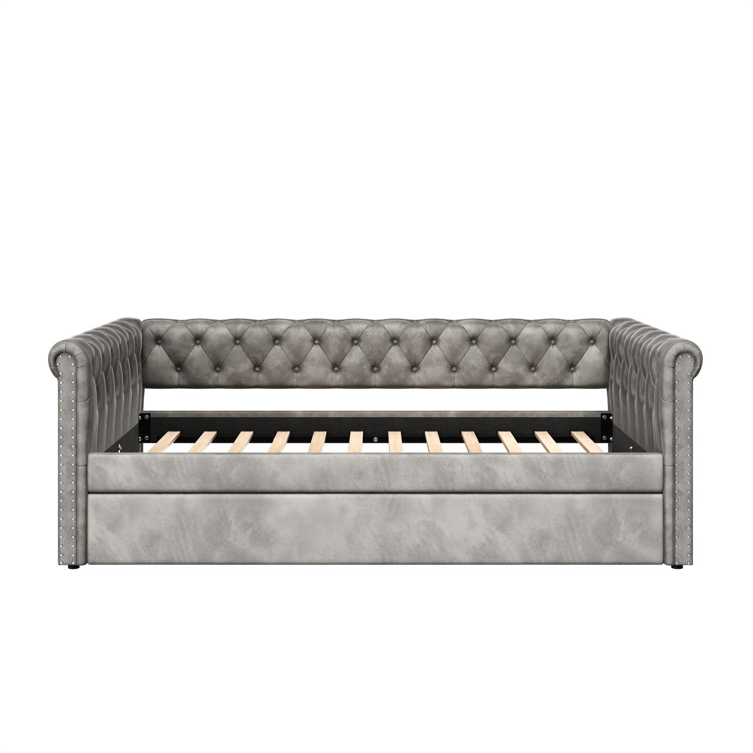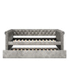 Sophia Tufted Design Upholstered Daybed with Trundle and Comfortable Backrest,Grey