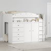 aside from being practical and comfortable, this superb loft bed really looks like something out of a fairy tale! Once you put it in your child's room, the pretty jeweled handles will add a charming, elegant style. Another plus: your little one gets their own secret hiding place – in the space under the bed, behind the wardrobe – where they can play as long as they want. Built safe this product meets all astm safety standards… and the large pieces edging the bed, along with its rounded corners and sturdy ladder, will ensure your little one has a safe place to sleep.