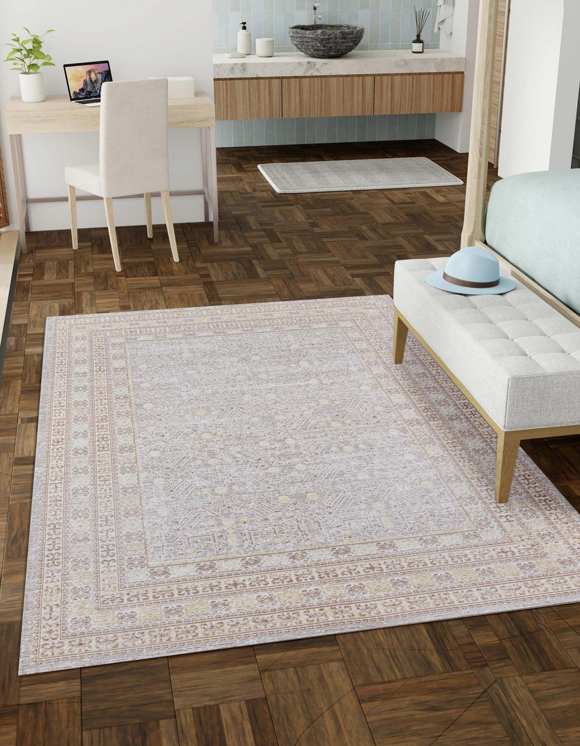 Valeria Traditional 5'3" x 7'3" Area Rug in Grey Indoor Area Rug