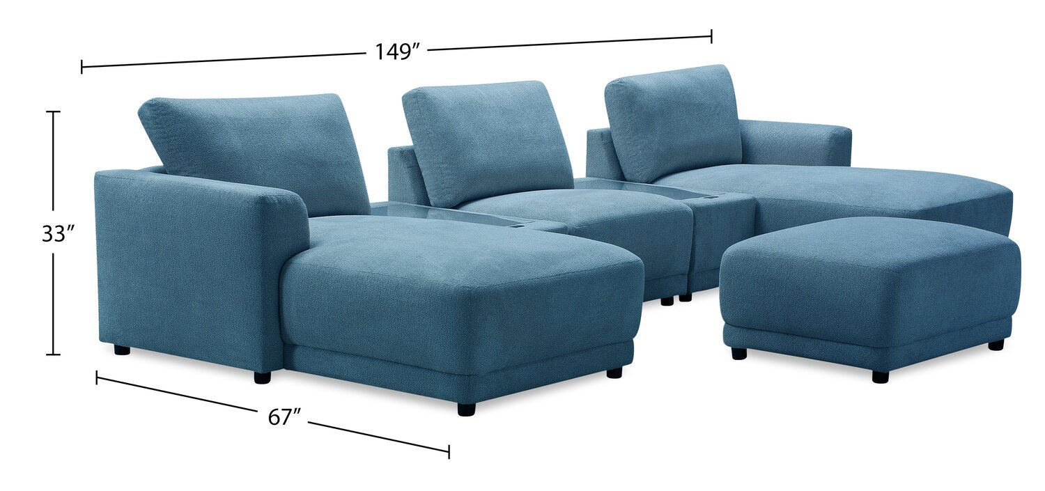 Voyage Modular 6-Piece Left-Facing Fabric Sectional with Console and Ottoman – Blue