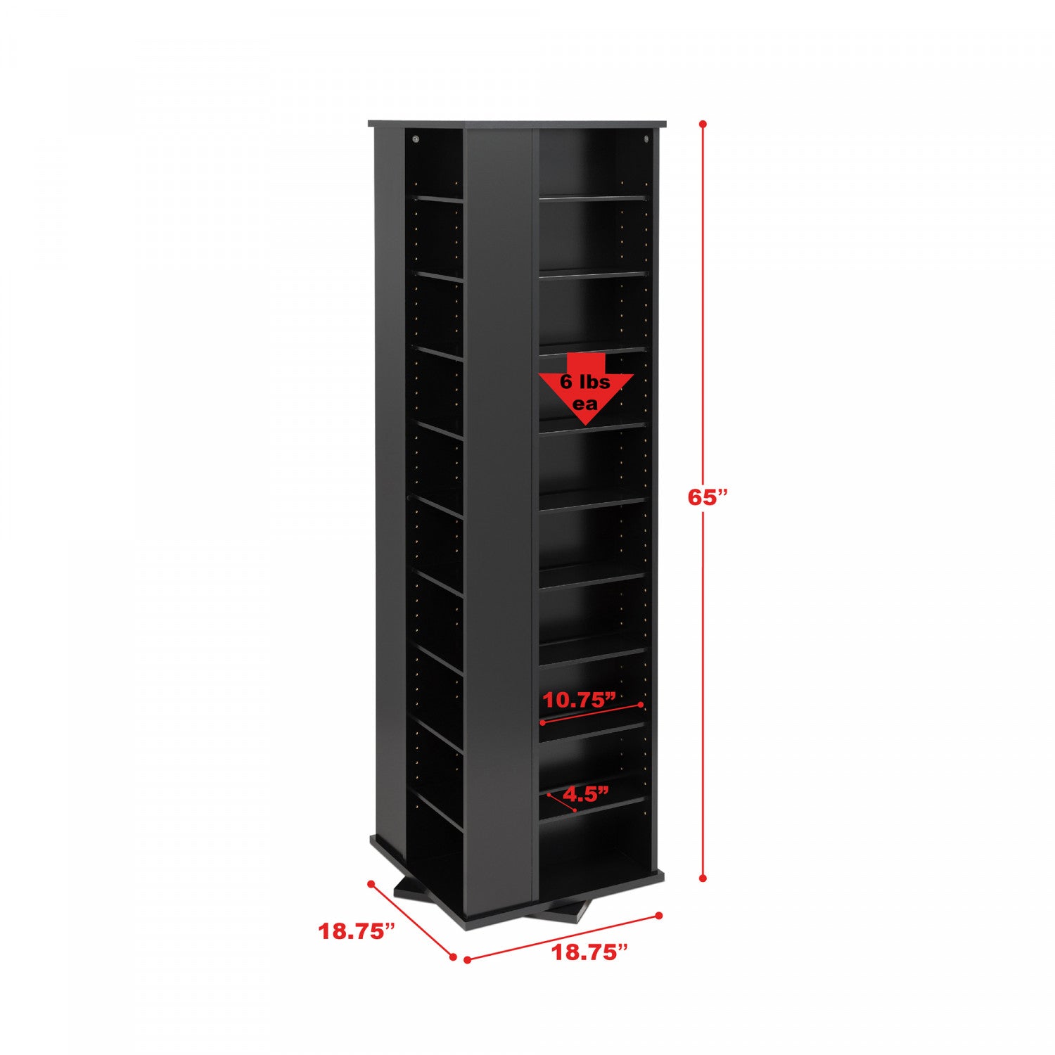 Transform your media collection into a well-organized and easily accessible display with the large 4-sided spinning tower, an innovative and space-saving solution for avid collectors. Measuring 18. 75” d x 18. 75” w x 65” h, this versatile media storage unit offers an impressive capacity for more than a thousand cds, dvds, or other multimedia items while occupying just under two square feet of floor space. The fully adjustable shelves are designed for customization, allowing you to store and effortlessly access your entire collection from any angle, making this tower an ideal choice for maximizing storage in compact spaces. Crafted from durable, non-toxic materials, this dvd storage cabinet combines functionality with a sleek and contemporary design, blending seamlessly into any room decor. Its horizontal storage setup ensures easy filling, sorting, and reorganizing of your collection as it grows, whether you’re housing a large library of movies, music, or games, this cd storage tower adapts to your evolving needs with style and ease. It’s the perfect addition to a home entertainment center with shelves or a standalone piece in a living room, office, or bedroom, providing both visual appeal and practical functionality. This high-capacity multimedia cabinet is proudly made in the usa & canada, reflecting exceptional craftsmanship and attention to detail. The robust design ensures your media collection is secure and neatly stored, while its spinning feature offers unmatched convenience for finding exactly what you’re looking for. Whether as a standalone media unit or part of an entertainment center, this spinning tower is perfect for collectors seeking organization and accessibility. Backed by a 5-year limited warranty, it offers peace of mind and a dependable storage solution that grows with your collection. If you’re serious about dvd storage, or creating a professional-grade multimedia storage unit, the large 4-sided spinning tower is a must-have for you.