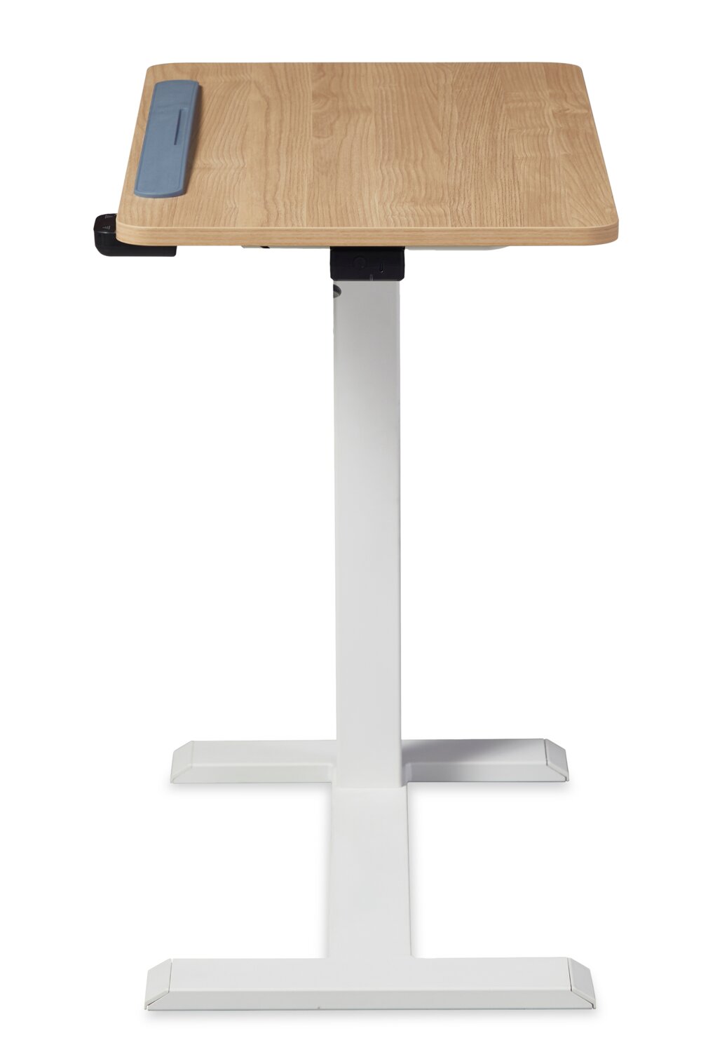 Bring flexibility and modern functionality to your home with the Aaron height-adjustable desk. Its power-lift levelling system allows you to switch effortlessly between sitting and standing, helping you stay comfortable and productive throughout the day. A built-in rechargeable battery powers the height-adjustable feature for up to 100 lifts on a single charge, giving you true cordless portability. When raised, the lift-top surface tilts to provide angled viewing, perfect for sketching, typing, or catching up on emails. Plus, the C-shaped design allows it to slide neatly under a sofa or bed, offering portable convenience. Whether you’re working, studying or creating, this versatile desk adapts to your routine and your space.