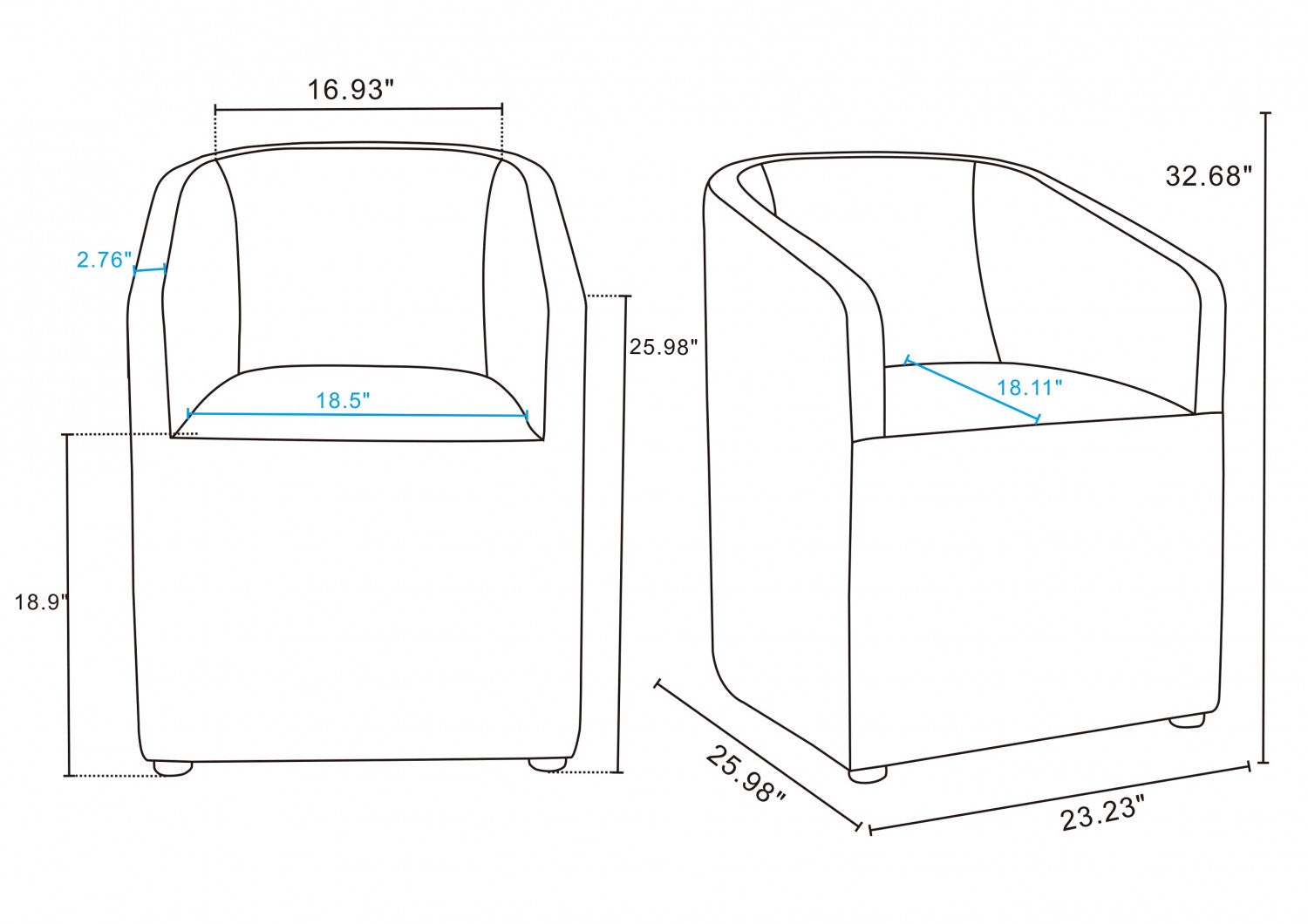 Anna Round Modern Vegan Leather Armchair in Graphite - Set of 2