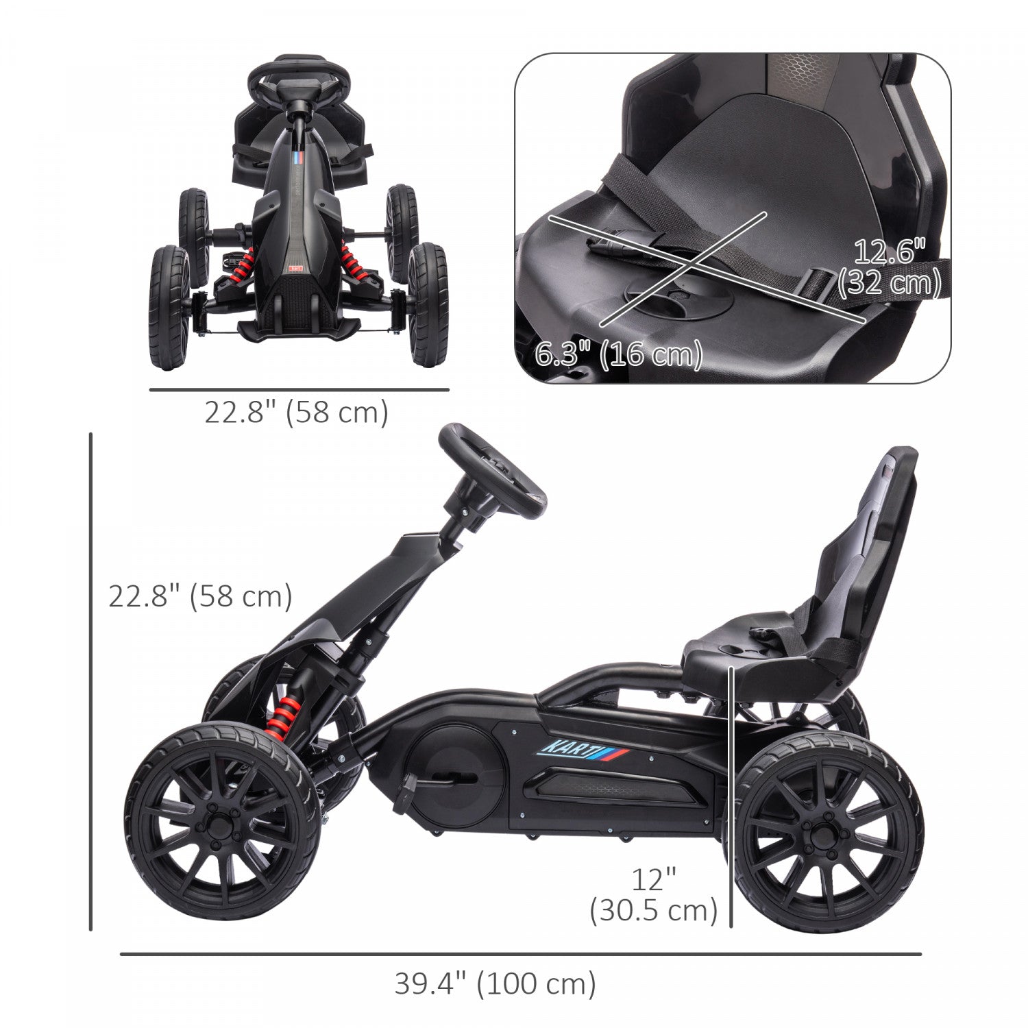 Aosom Go Kart For Kids, Pedal Car With Adjustable Seat, Forward, Backward, Handbrake, Shock Absorption For 3-8 Years, Black