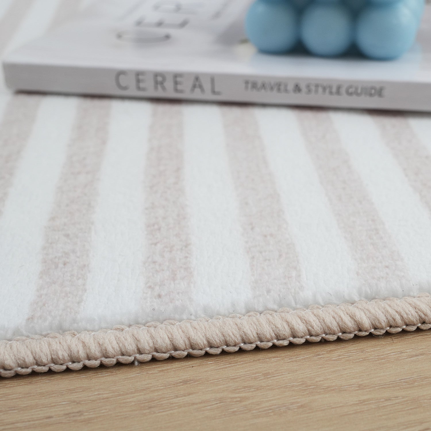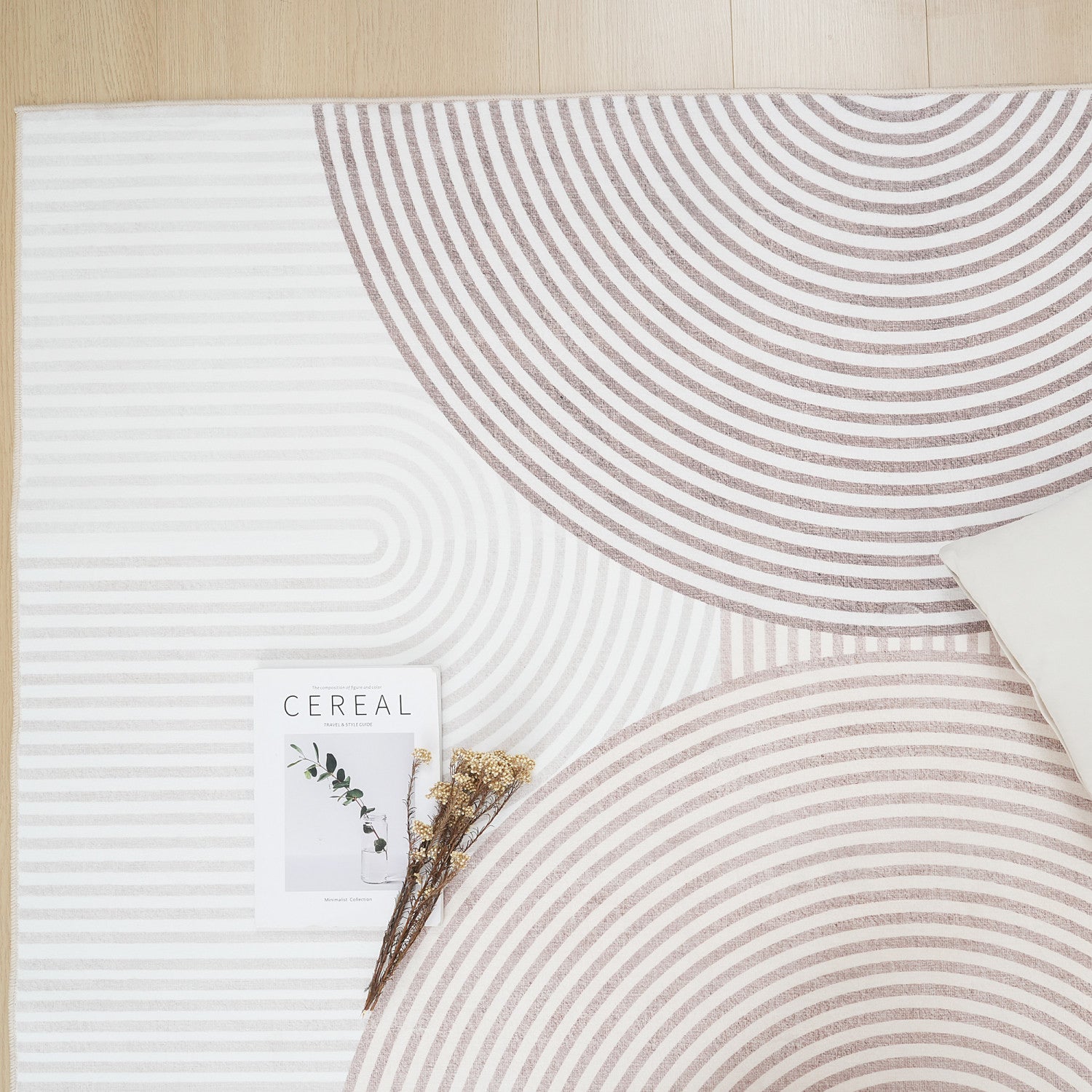 Fall in love with the perfect blend of comfort and convenience—our machine washable, non-slip, low-pile area rug is made for modern living. With an irresistibly soft touch underfoot and a timeless design that effortlessly complements any space, this cream geometric style carpet is the perfect decor for your living room, bedroom, or dining area.