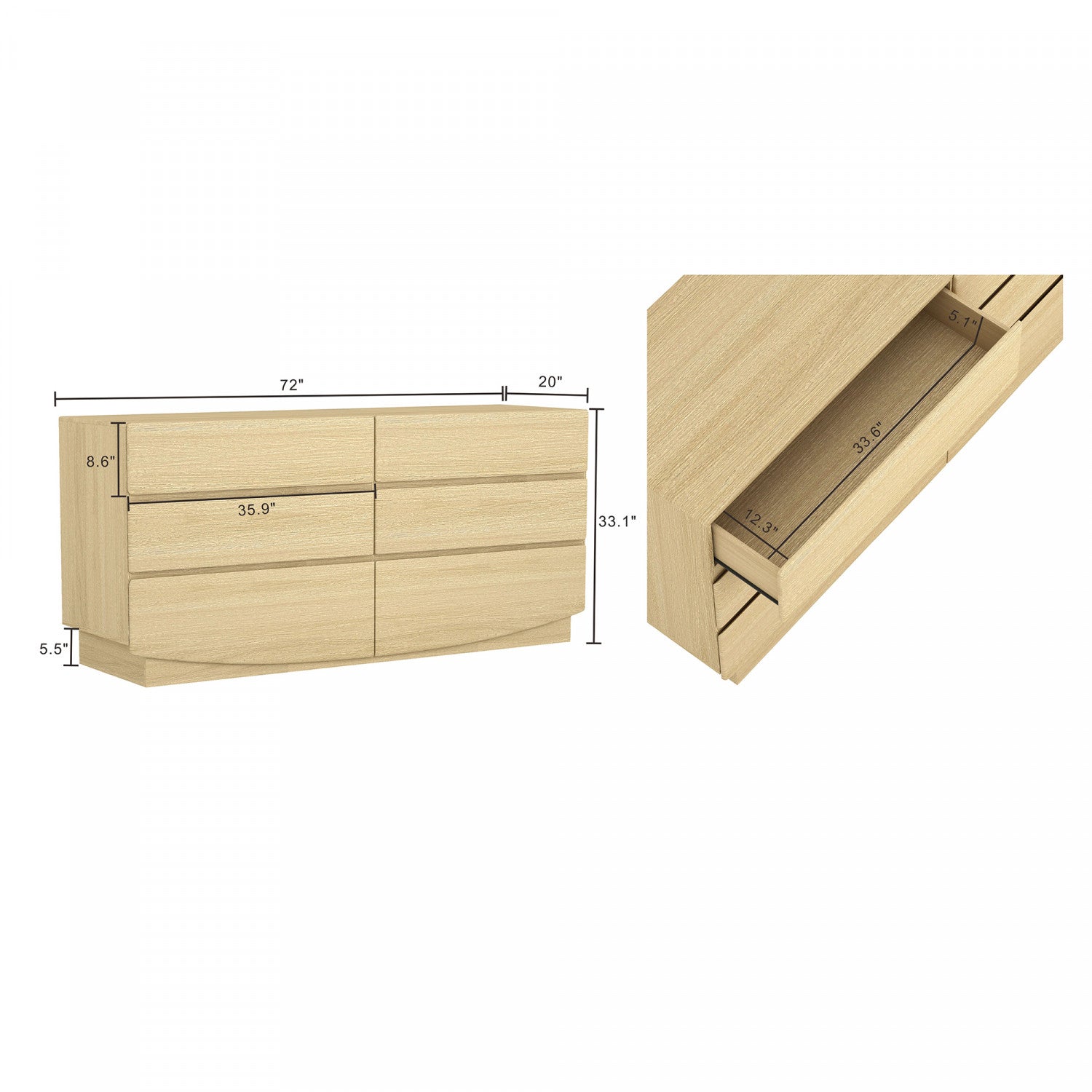Ardea Contemporary 72" Dresser in Natural Oak (6-Drawer)