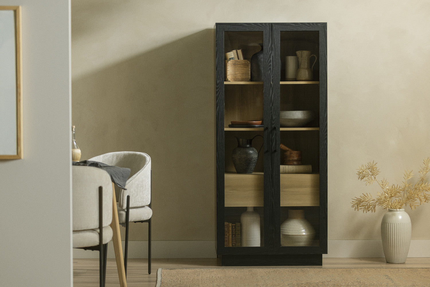 Arum Contemporary 2-Door Kitchen Cabinet with Doors Black Oak and Natural Ash - South Shore Kitchen Storage