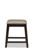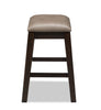 Enjoy the high life with this Astoria counter-height dining stool. Crafted with solid acacia wood and veneers, this backless stool's dark grey-brown finish adds a smoky, sophisticated allure to your home. The clean lines of this design offer an attractive profile, from the tapered legs to the soft grey faux leather seat. Packed with comfortable high-density foam, this smooth and easy-to-clean seat is a destination for relaxation.