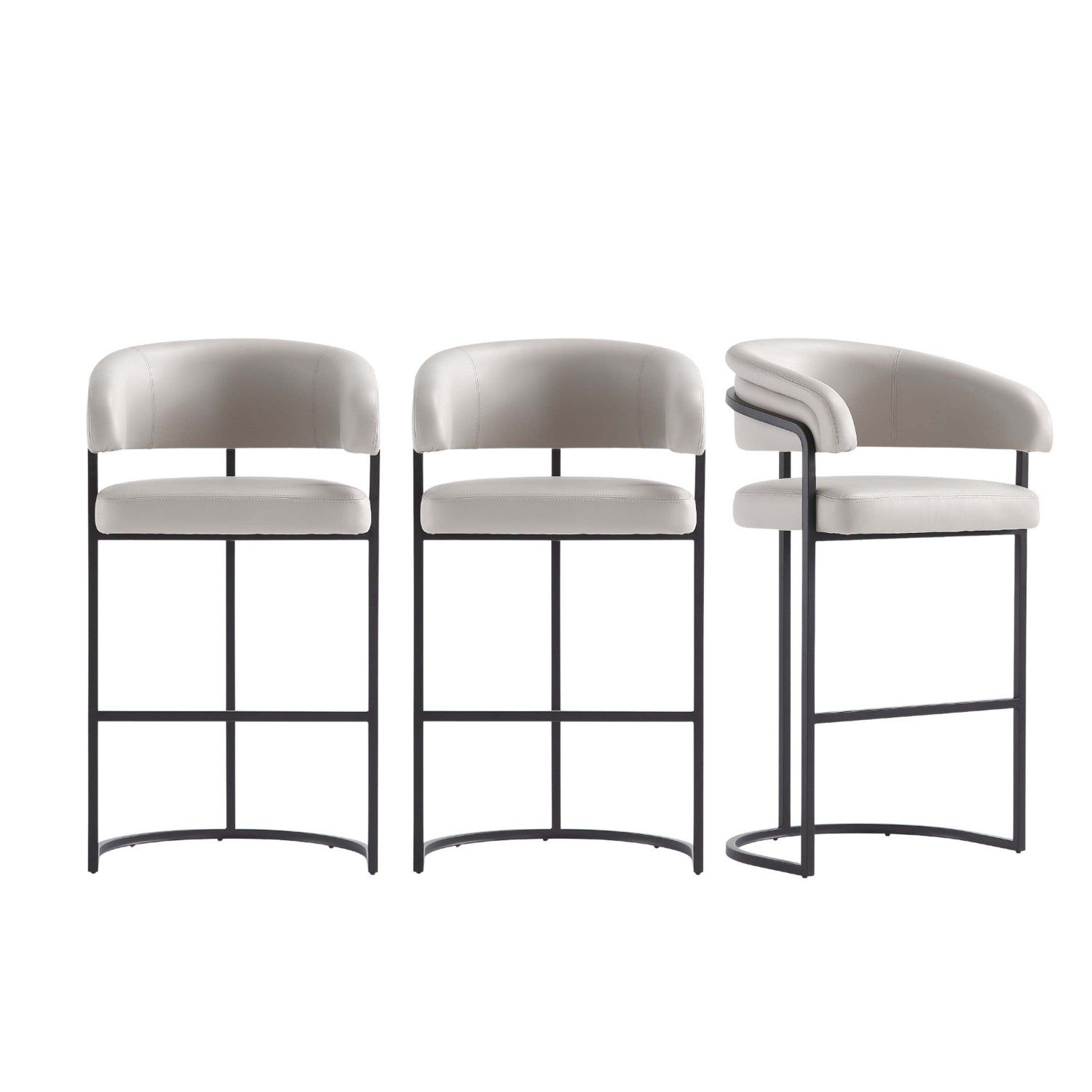 Augusta Modern Metal Upholstered Barstool in Light Gray - Set of 3