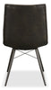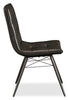 Add some industrial cool to your dining space with the Avis dining chair. Square patterned, black faux leather is decorated with button tufting on both the seat and back. Pointed metal legs radiate out from the seat to keep you sitting securely in style. Settle into the Avis, and embrace the dark side of dinner time.