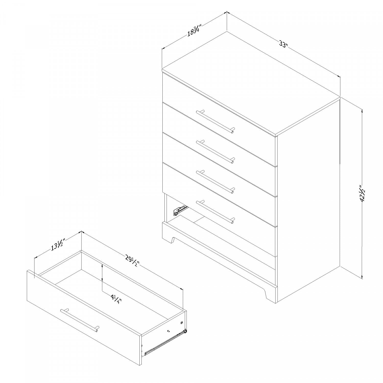 Specially designed with storage in mind, this dresser features five spacious drawers, providing plenty of space for all your clothes and accessories. The metal sliders ensure smooth and quiet operation, making it easy to access your belongings.