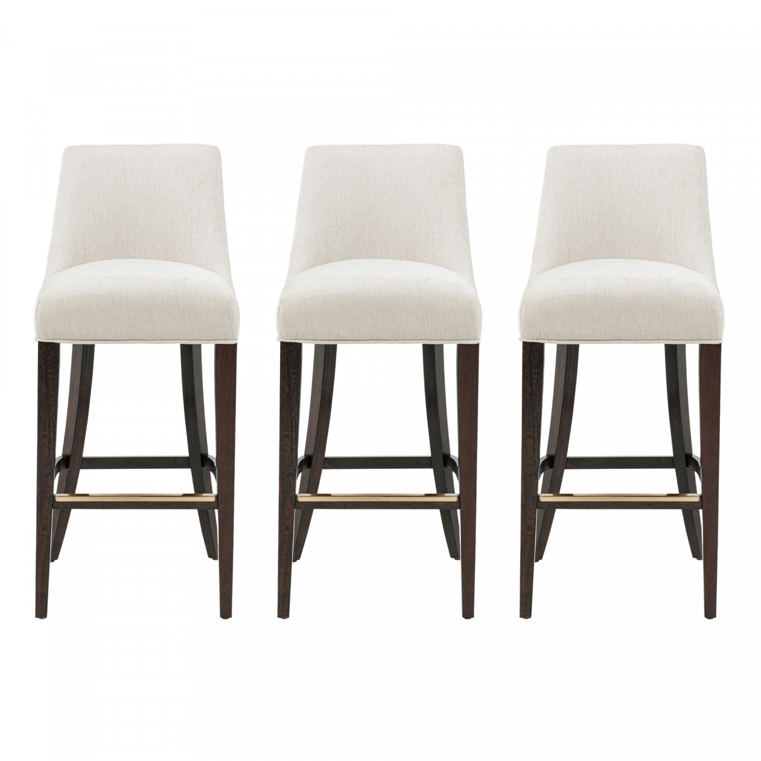 Beever Modern Chenille Wood Upholstered Barstool in Cream - Set of 3 Bar Stool