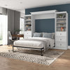 The Bestar Versatile Queen Murphy Bed and 2 Closet Organizers with Drawers (115W) is the ideal space saver for a multipurpose room. The mattress support uses flexible slats that follow the curves of the body and absorb pressure for maximum comfort. The bed folds up and down smoothly within seconds. The wall bed accommodates most standard Queen mattresses (8-12 inches thick, 60-90 lb, 60 x 80 inches) and supports up to 1000 lb (including mattress). The open bed extends 92 inches from the wall. The cabinet must be anchored to a wall with a minimum ceiling height of 93. 8 inches. Allow a clearance of 30-36 inches around the open bed. Both Closet Organizers come with 2 fixed and 4 adjustable shelves as well as convenient drawers to hold your belongings. The dual-mount wall bed mechanism attaches to the floor and wall for ease of assembly and maximum stability and durability. To avoid risk of injury, the Murphy bed must be installed to wall and floor structure by a professional or qualified person. Two people are required for assembly. Installation requires attachment to wood studs or masonry, removal of the baseboard, and drilling into the floor (if disassembly is required, holes may be covered with baseboards 0. 5 inches or thicker). All necessary hardware is included. Do not use this product for children or pets under 50 pounds (22. 7 kg). Backed by the Bestar 10 Year Manufacturer’s Warranty. North American made with globally sourced materials.