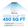 This Black+Decker 10,000 BTU (6,300 BTU sacc) portable air conditioner is your best friend during the summer months, supplying cool, free-flowing, and comfortable air 24/7 up to 450 square feet. When it comes to ac units for rooms, our portable cooler (15. 3" W x 14" D x 24. 8" H) has 3 functionalities all in one: fan, dehumidifier, and cool. Our portable air conditioners for rooms feature an easy-to-use electronic control panel and full function remote control for easy operation. Follow me feature turns your remote control into a mobile thermostat to allow for precise temperature control. It's like having your thermostat in the palm of your hand. Control temperature, fan speed and all other functions while maintaining perfect temperature control where you are and where you need it most. With a 24-hour timer that can be set on or off, slide-out washable filter, and auto water evaporation, the benefits of this room air conditioner speak for themselves. Included is a top mounted control panel with led display and an easy-to-install window kit so you can place your indoor air conditioner and room cooler air conditioner anywhere. With four casters on the bottom and two side handles, easily slide your air conditioner into any room of the house. Our portable ac unit and portable air conditioner 10,000 BTU comes with a power cord and plug storage for optimal convenience and uses r32 refrigerant for no ozone depletion. Truly, one of the best room air conditioners! The large front vented airflow outlet with 2-way adjustable louvers ensures superior functionality and total room cooler satisfaction.