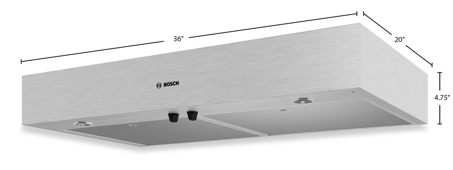 Width: 36" (91.4 cm) Height: 4.75" (12.1 cm) Depth: 20" (50.8 cm)