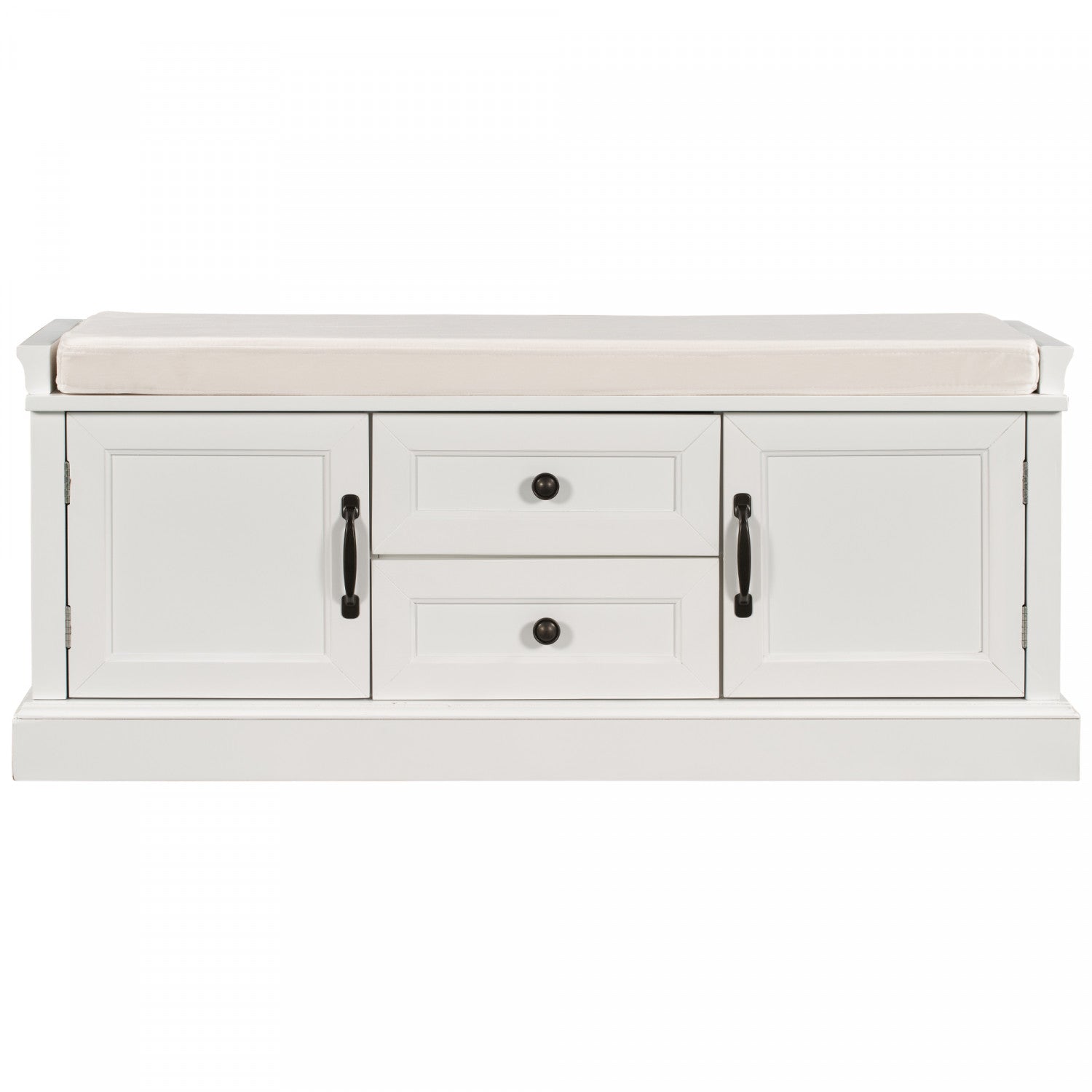 Boyce Solid Wood Storage Bench With 4-door Shoe Cabinet With Cushion - White