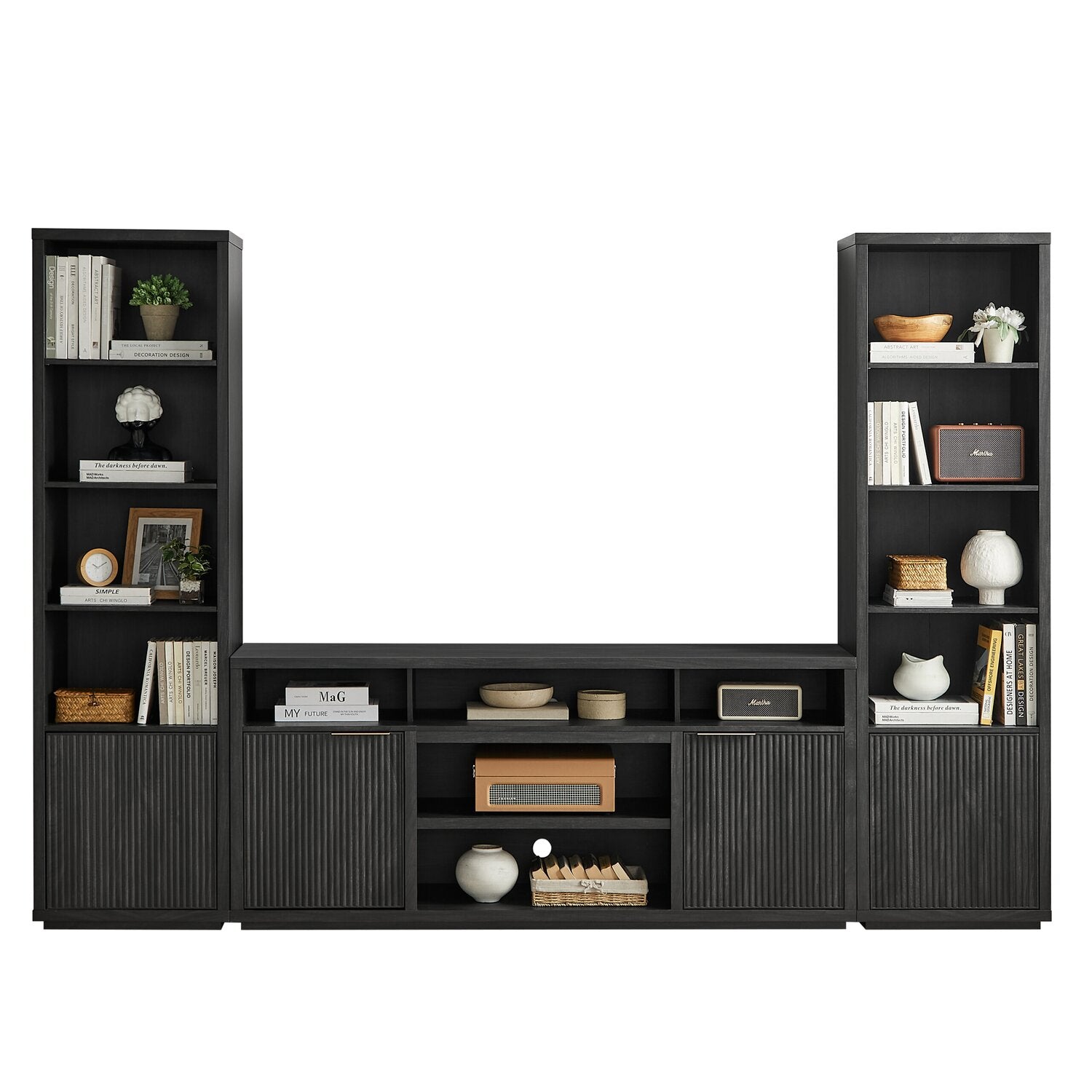 Brenner 104" 3 Piece Entertainment Center with Storage for TVs Up To 60" – Charcoal