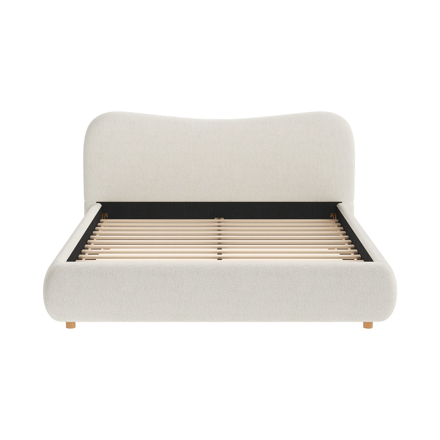 Camille Platform Bed with Curved Headboard and Luxurious Boucle Upholstery,Queen Size,White Queen Bed