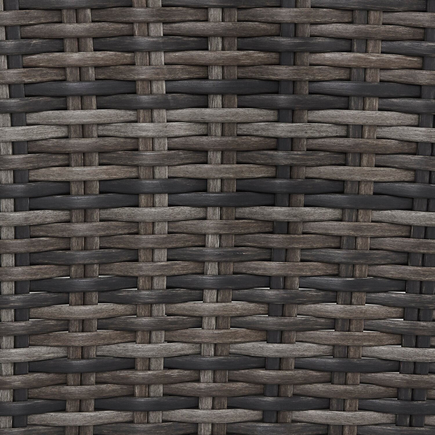 | Material | Steel, Metal, Resin Wicker Steel is an inherently strong yet flexible material used to construct machinery, buildings and furniture frames. Metal is known to maintain sturdy support, yet can be heated and bent into eye-catching designs. Rest easy knowing this metal piece will meet your household needs. Also known as all-weather wicker, this resilient material is made with synthetic fibres. Resin rattan will repel the elements, and resists UV radiation, humidity and water. |