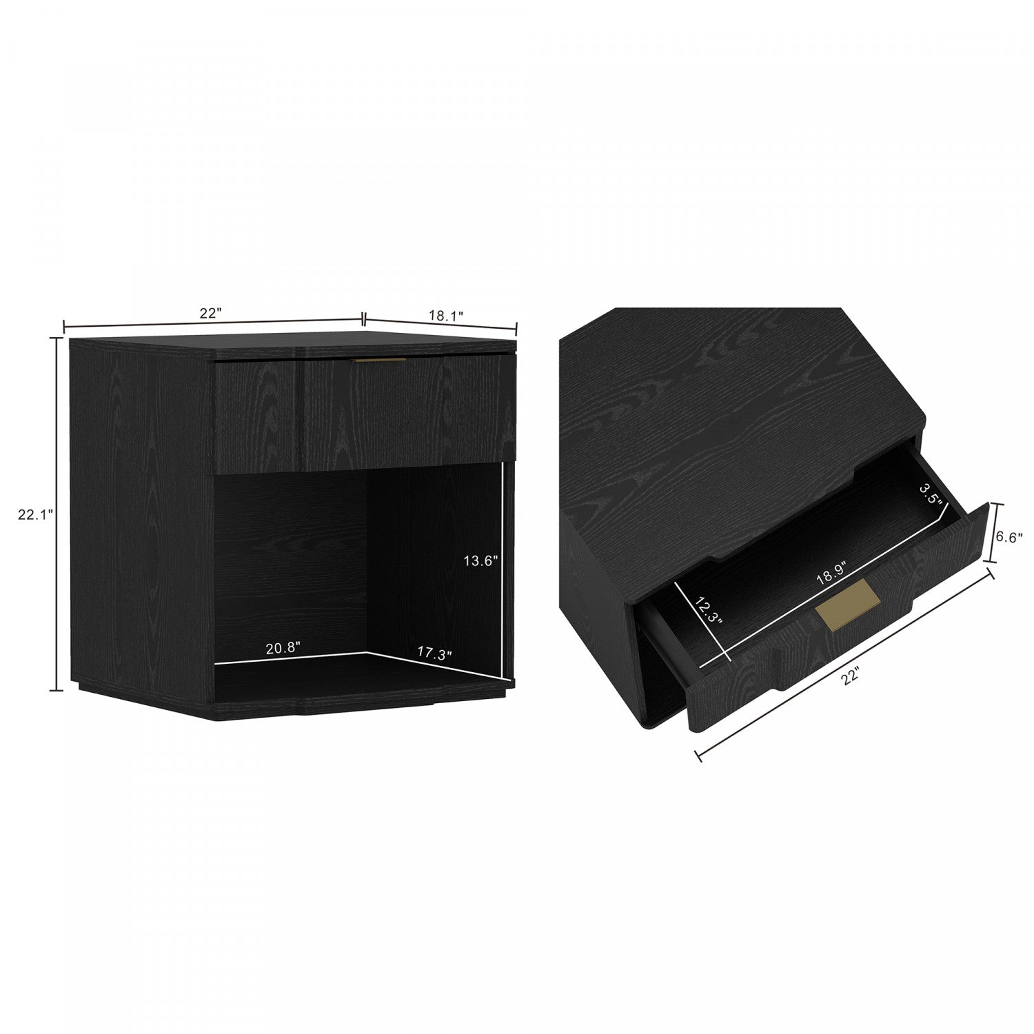 Clive Mid-Century Modern 22" Nightstand in Black (1-Drawer)