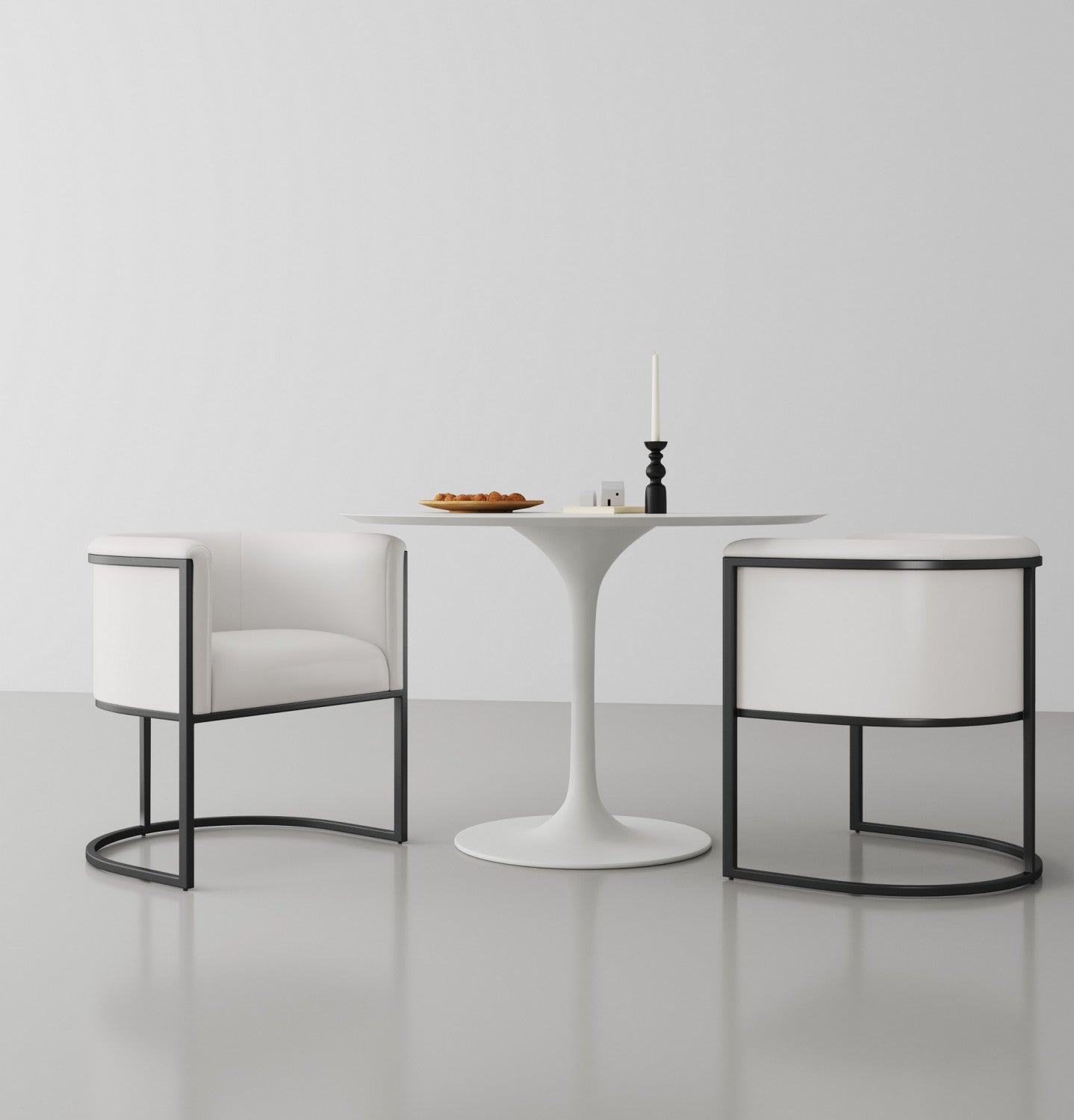 Cosmopolitan Mid-Century Modern Vegan Leather Metal Dining Chair in Ivory - Set of 2
