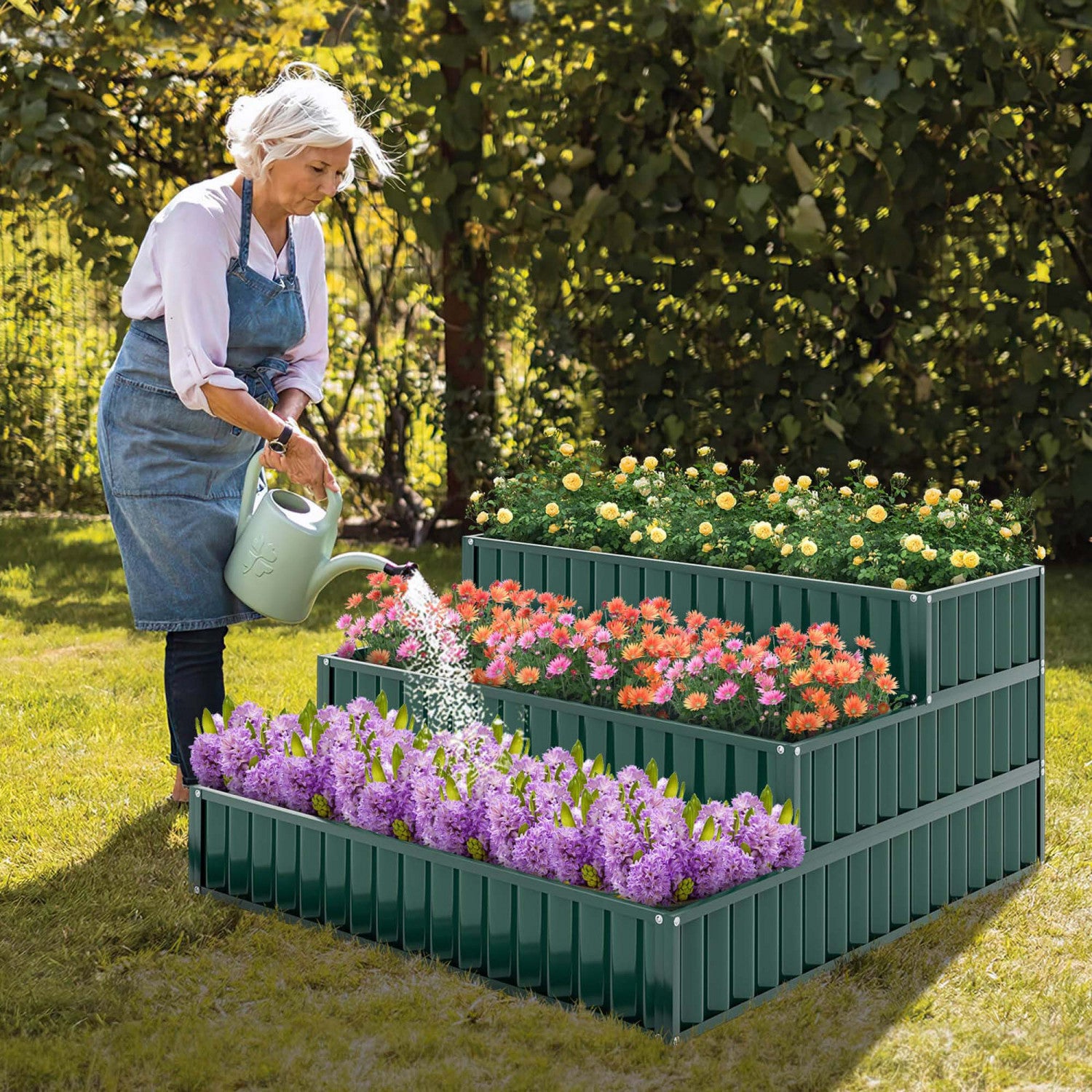 Costway 1 Pcs 3-tier Raised Garden Bed,47" X 47" X 24" Metal Outdoor Elevated Planter Box Green