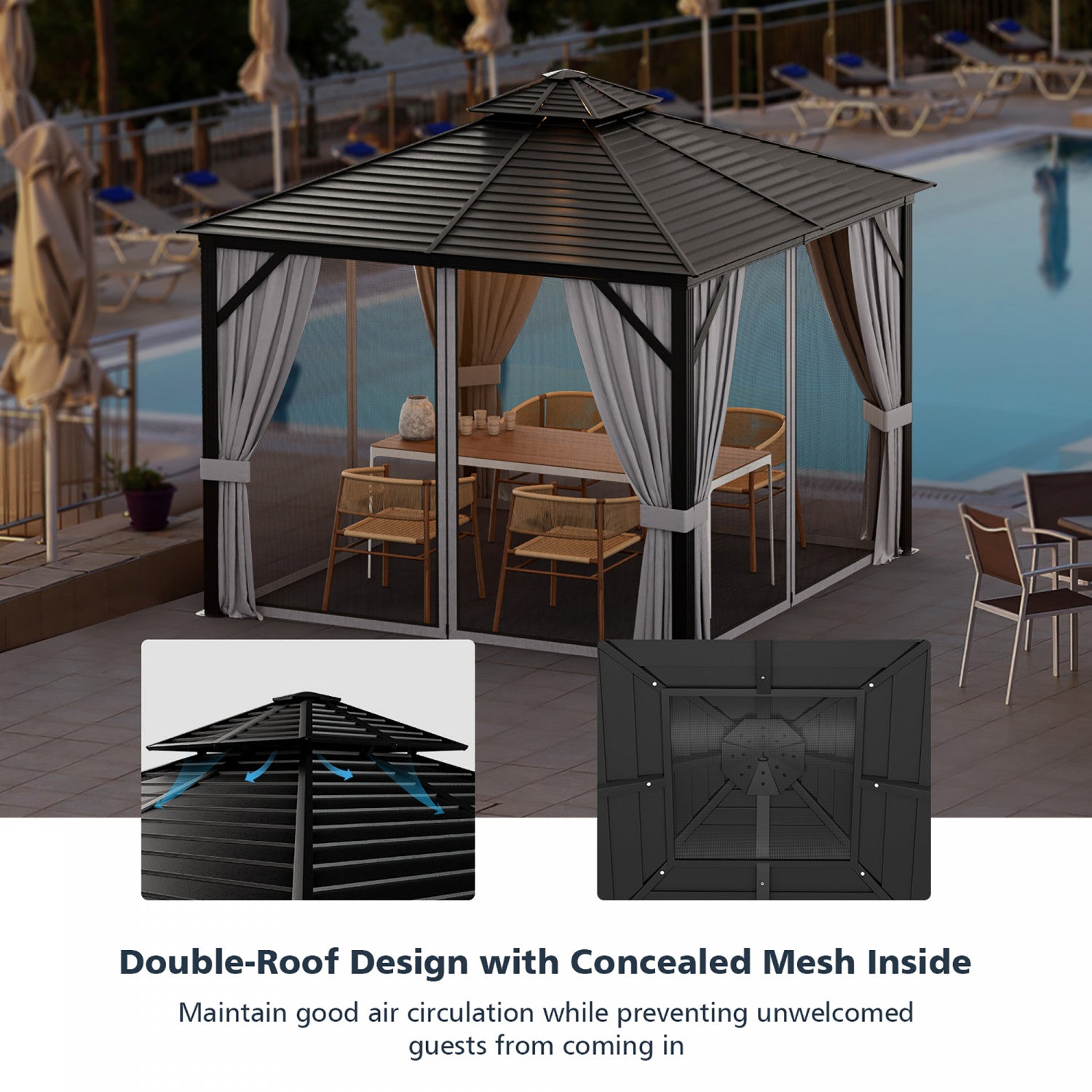 Costway 10' X 10' Patio Double-top Hardtop Gazebo Galvanized Steel Roof Aluminum Frame