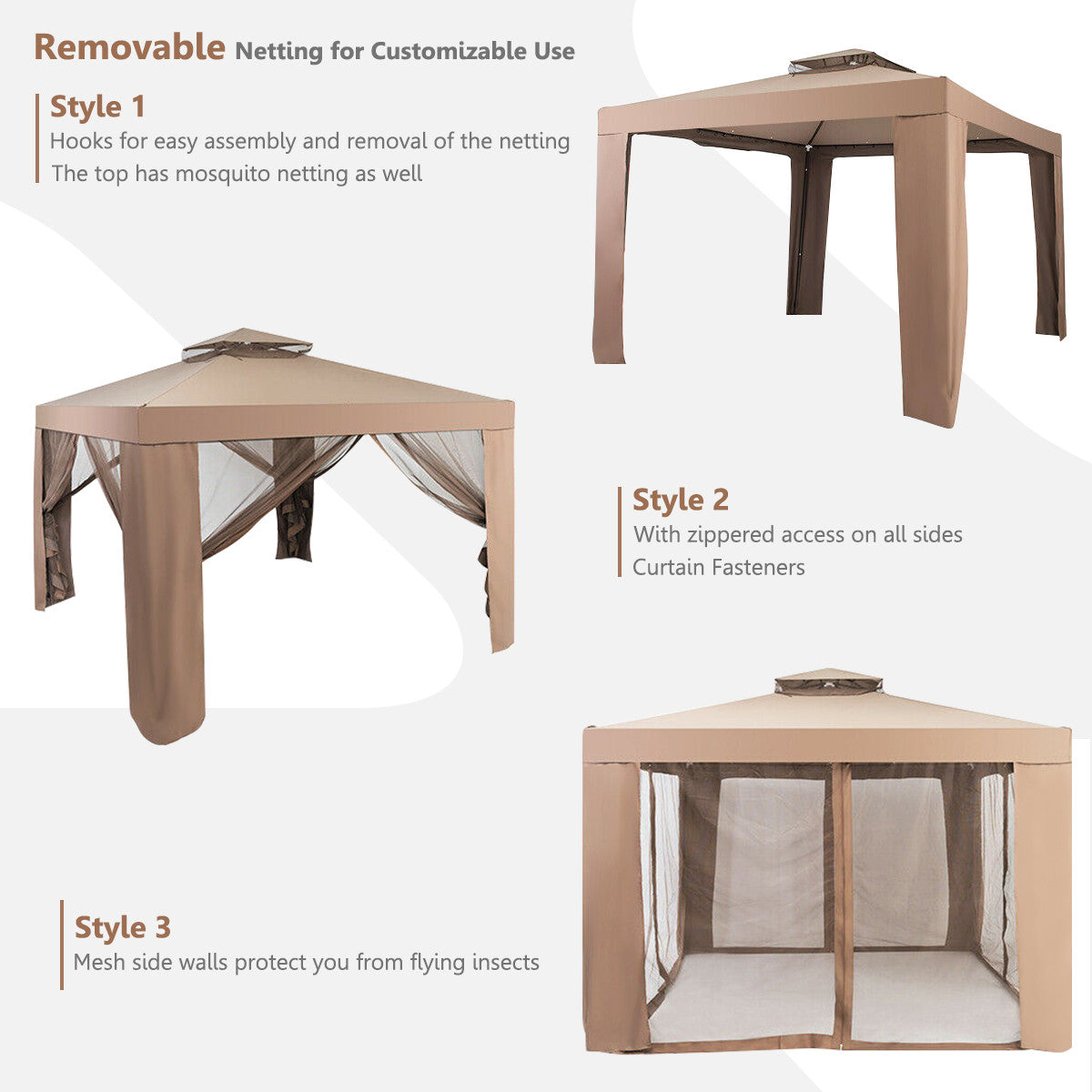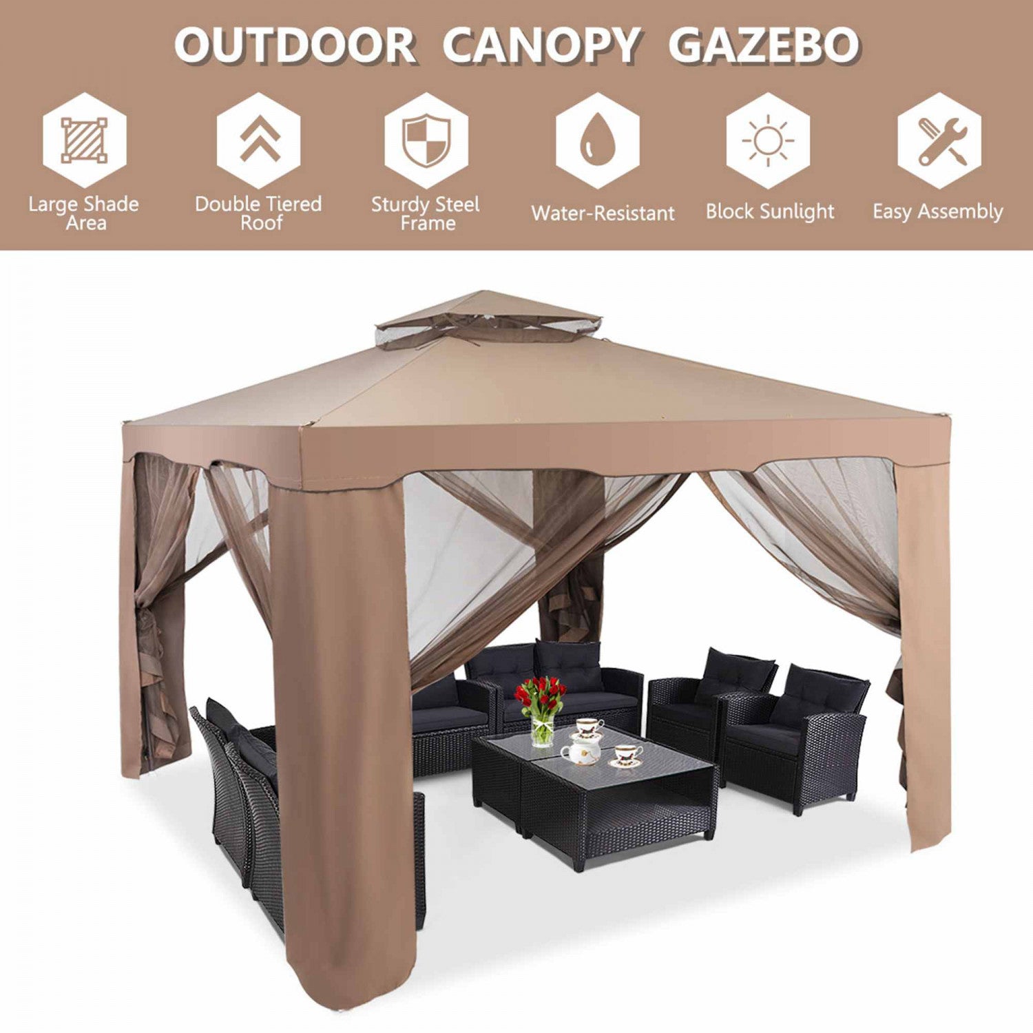 Costway 10'x 10'2-tier Canopy Gazebo Tent Outdoor Netting Picnic Party Sun Shade