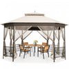 Costway 10'x12' Patio Gazebo Canopy Shelter Double Top Netting Sidewalls Beige