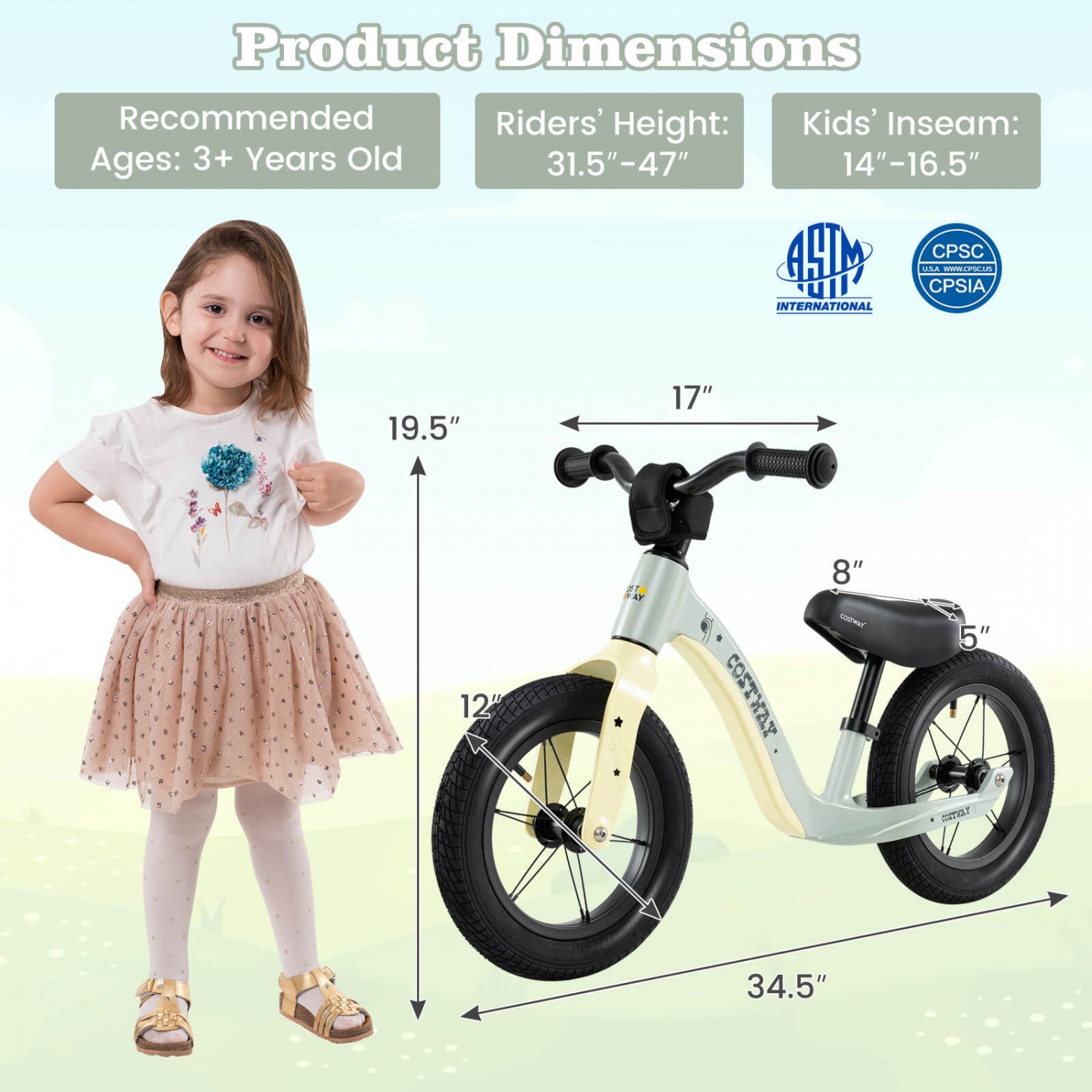 Costway 12 Inch Magnesium Toddler Balance Bike No Pedal Training Toddler Balance Bike Green