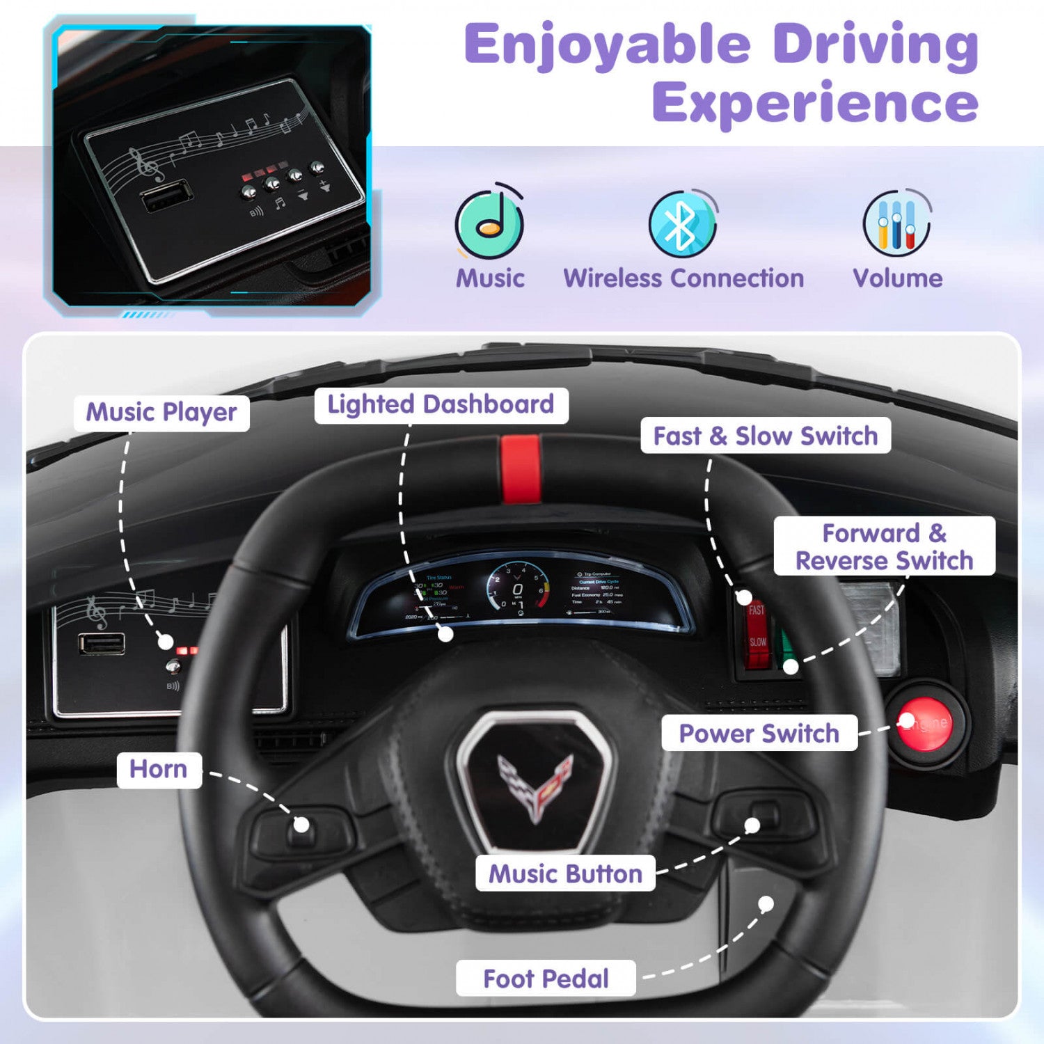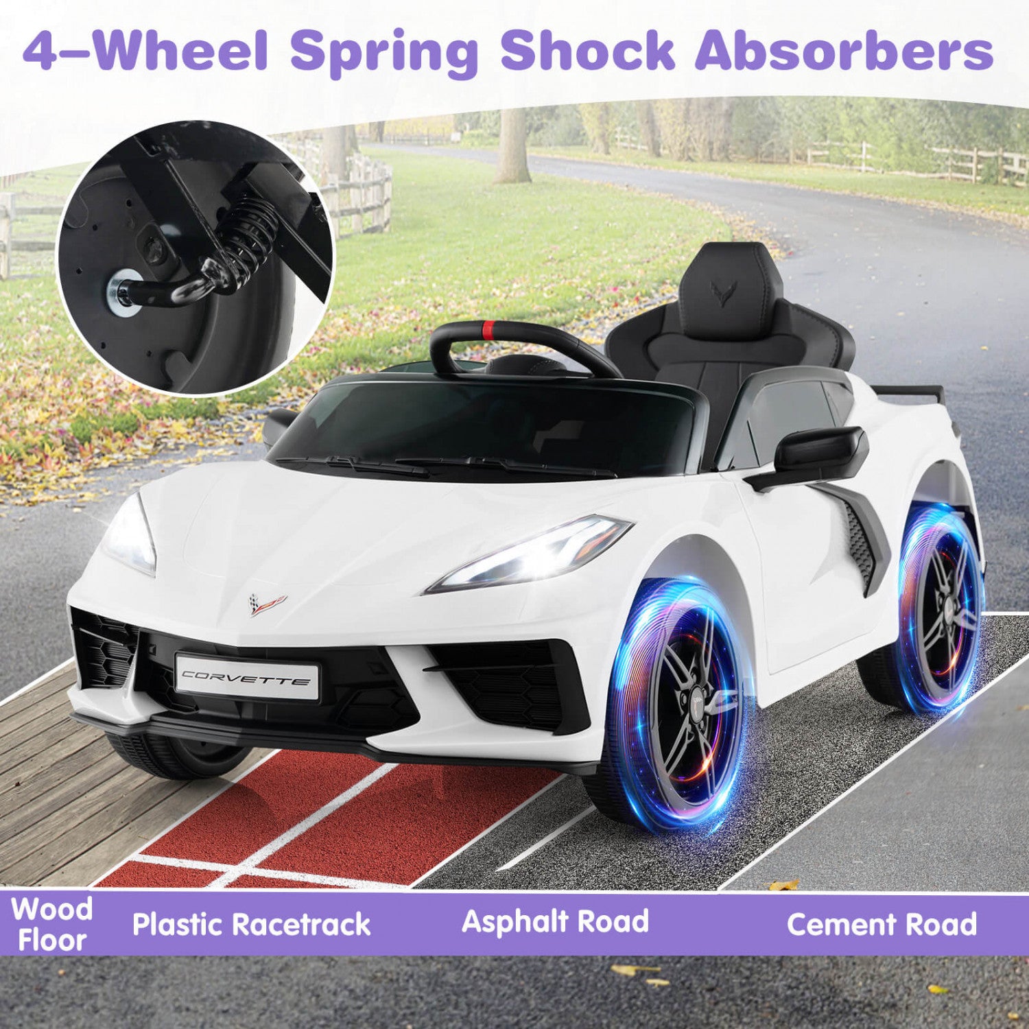 Costway 12v Electric Kids Ride On Car With Remote Control Wireless Connection Lights White