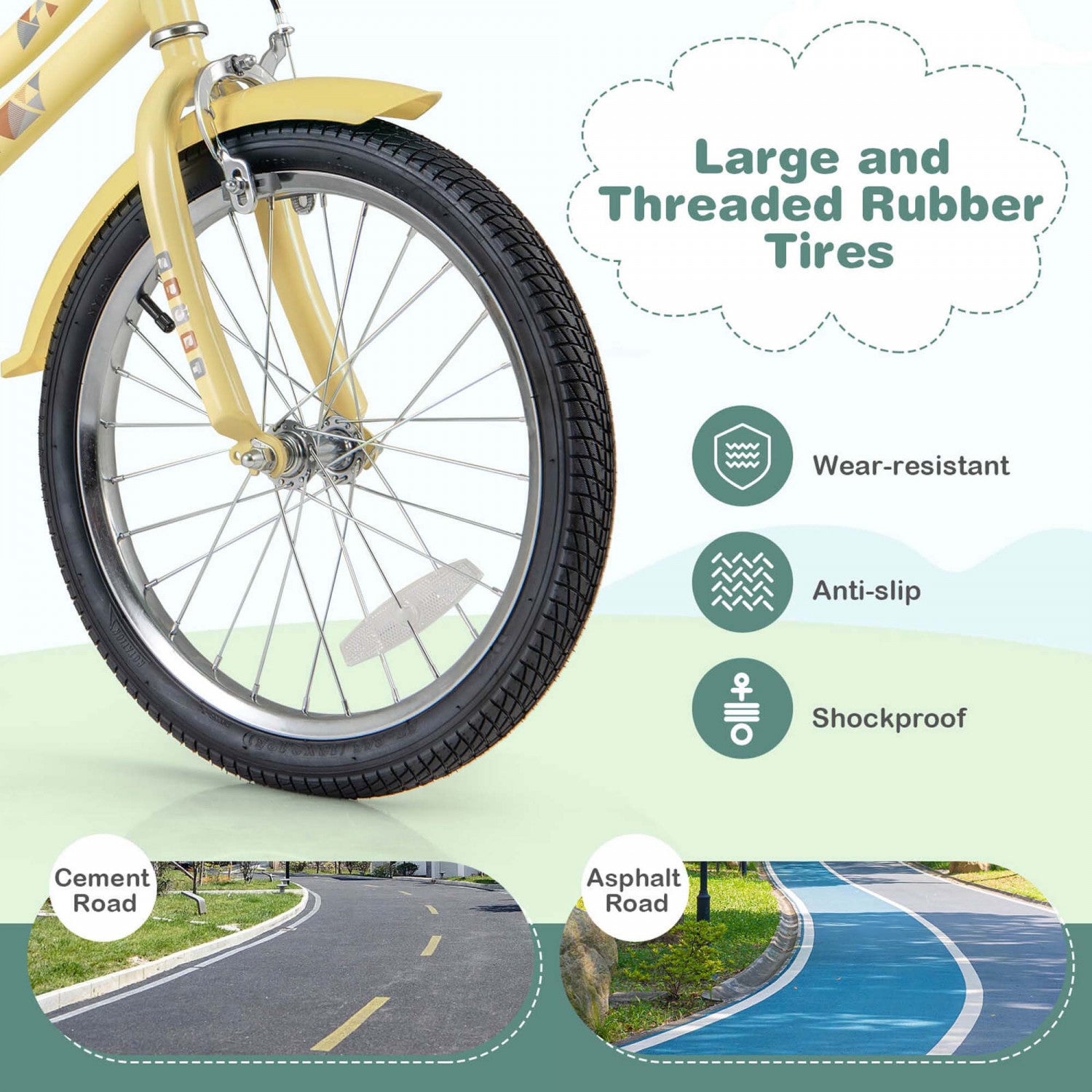 Costway 18" Kids Bike With Height Adjustable Handlebar Seat Basket Bell Training Wheels Yellow