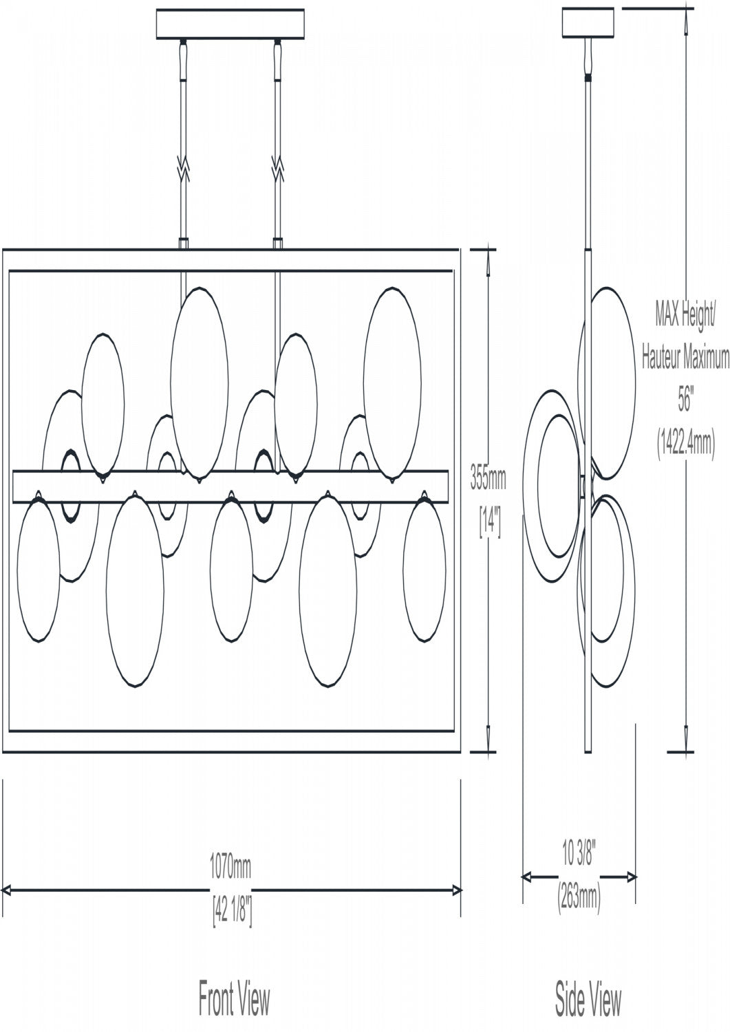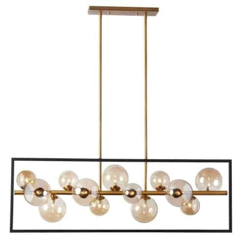 Dainolite Glasgow 13 Light Horizontal Pendant Square Frame Matte Black/Vintage Bronze Finish Champagne Glass Lamp