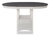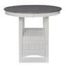 Gather your family, large or small, around this Dena dove grey counter-height dining table to break bread and make memories. Oak veneers are applied over a rubberwood base to create an appealing look in your chic eating space. Around the edge of the surface are bowtie-shaped connectors to hold the pieces together with a homemade feel. A compact design allows this piece to fit into a limited area – yet if everyone comes over for a special meal, you can use the removable table leaf for an extra 18 inches. Put this Dena table at the heart of your family's magical moments.