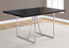 Wait until you set up this super trendy espresso dining table in your home, whether it be a smaller house, apartment, condo or even a loft. Its versatile contemporary look will amaze you. Seating up to 4 people, this kitchen table is equipped with unique U-shaped chrome metal legs to give it that extra edge for your dining room or kitchen. Also a great fit for smaller spaces, blend its dark brown color with just about any design you choose in your home. Chairs are sold separately.