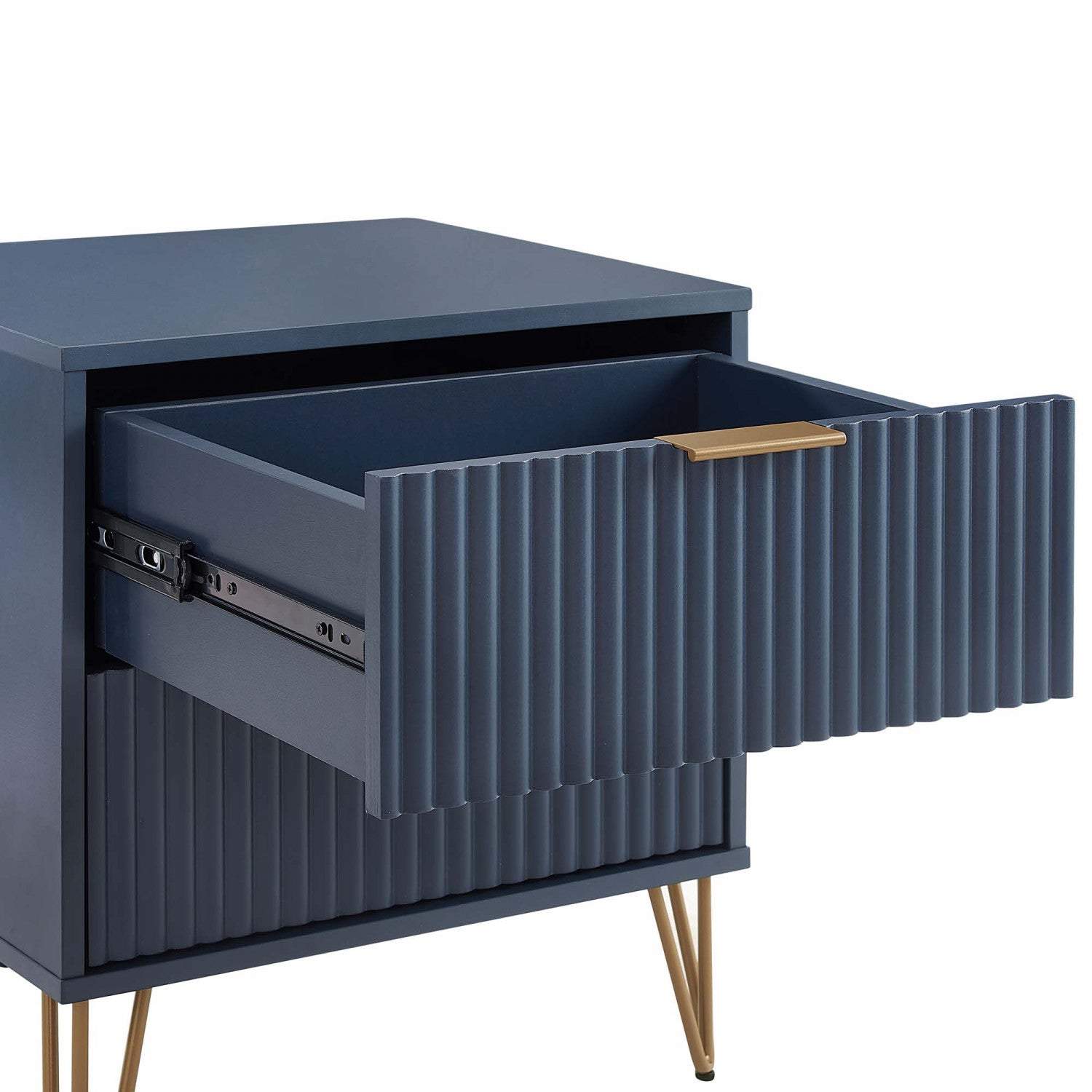 Dumbo Modern 20" Fluted Nightstand in Midnight Blue (2-Drawer) - Set of 2