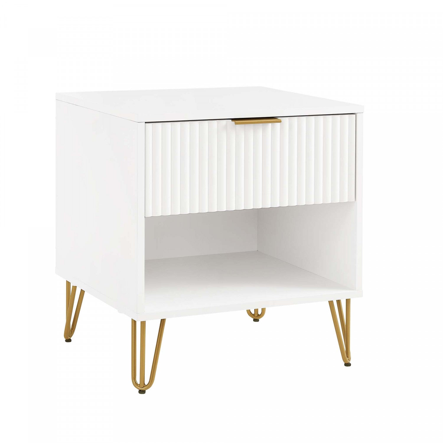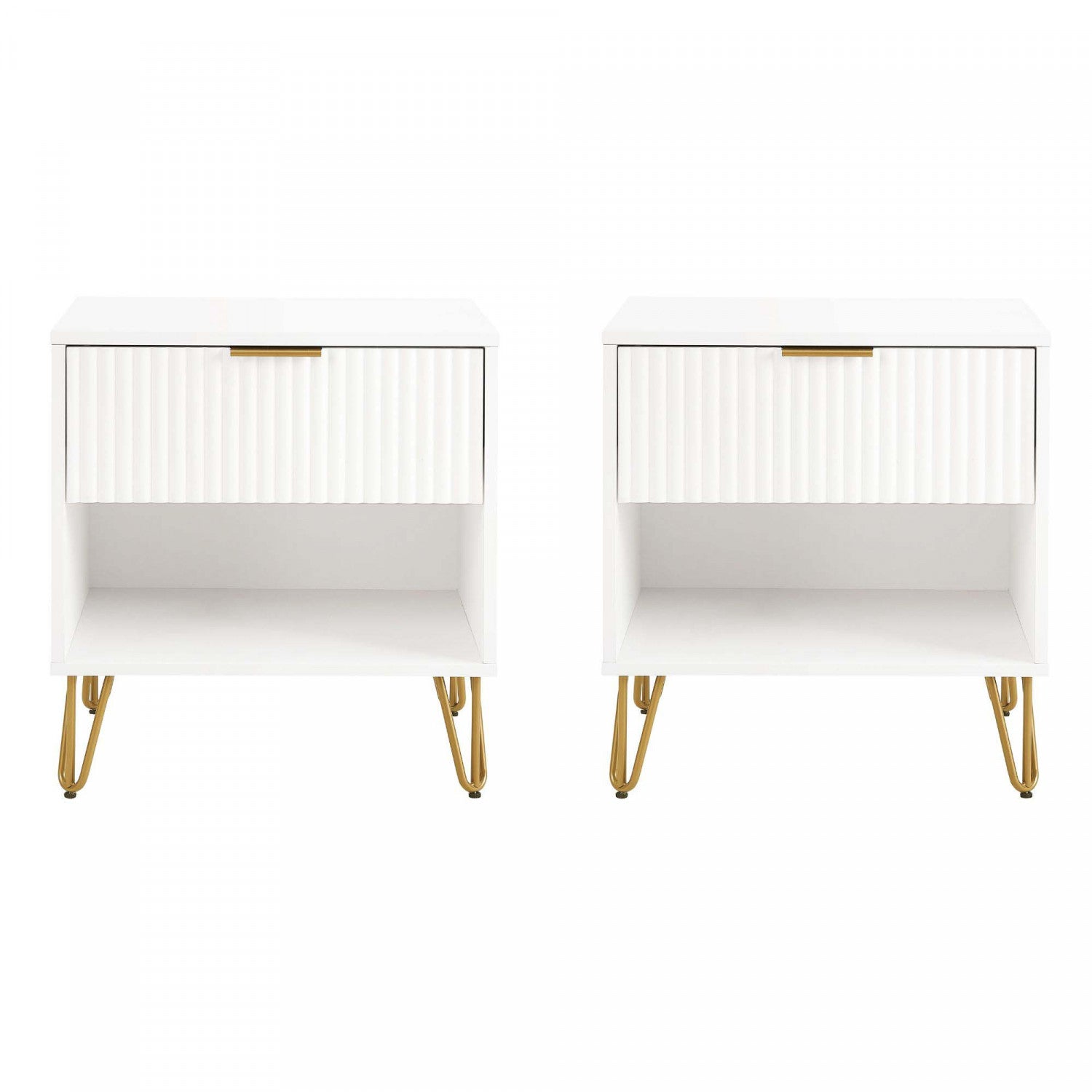 Dumbo Modern 20" Fluted Nightstand in White (1-Drawer) - Set of 2