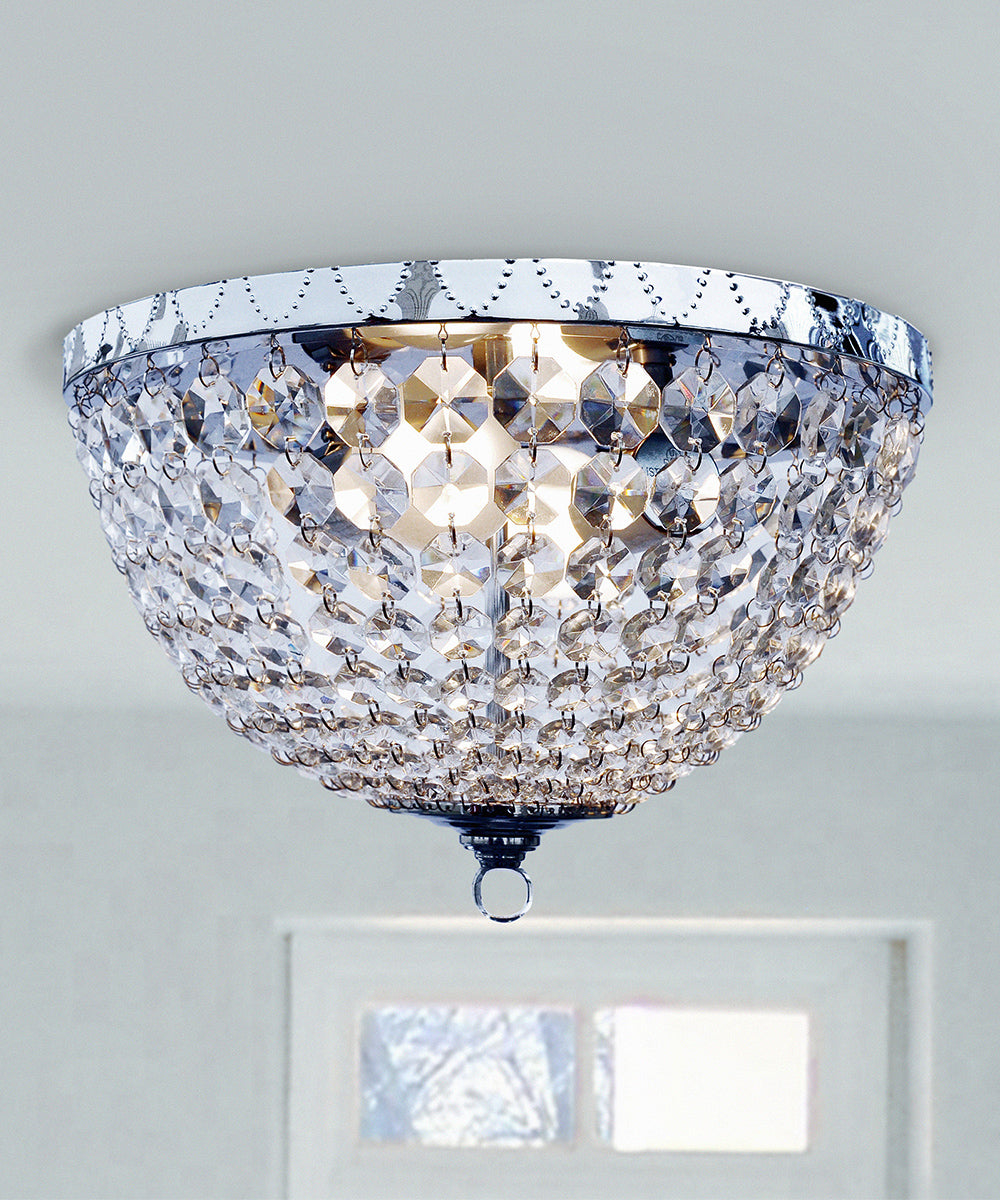 Bejewel your home with this gorgeous two (2) light elegant crystal drop ceiling flushmount. It features a beautiful crystal shade. This fabulously chic design will be the envy of all your friends! We believe that lighting is like jewelry for your home. Our products will help to enhance your room with elegance and sophistication.