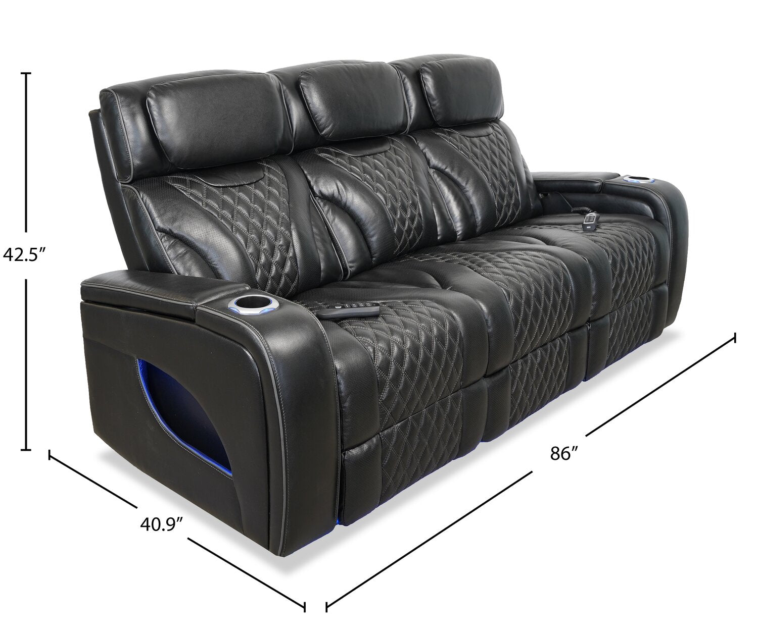 Width: 86" (218.4 cm) Height: 42.5" (108.0 cm) Depth: 40.9" (103.9 cm)