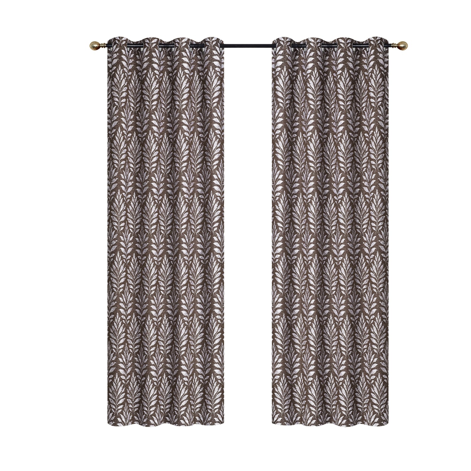 Embroidered Panel Fern Chocolate 84" - Set of 2 Drapes and Blinds