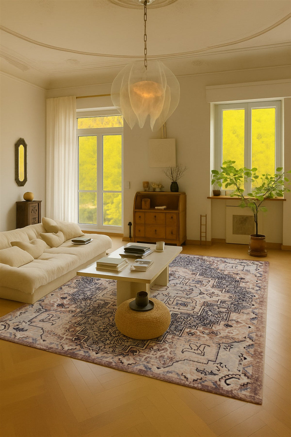 Esmira Traditional Blue Washable Rug 8'0" x 10'0" Indoor Area Rug