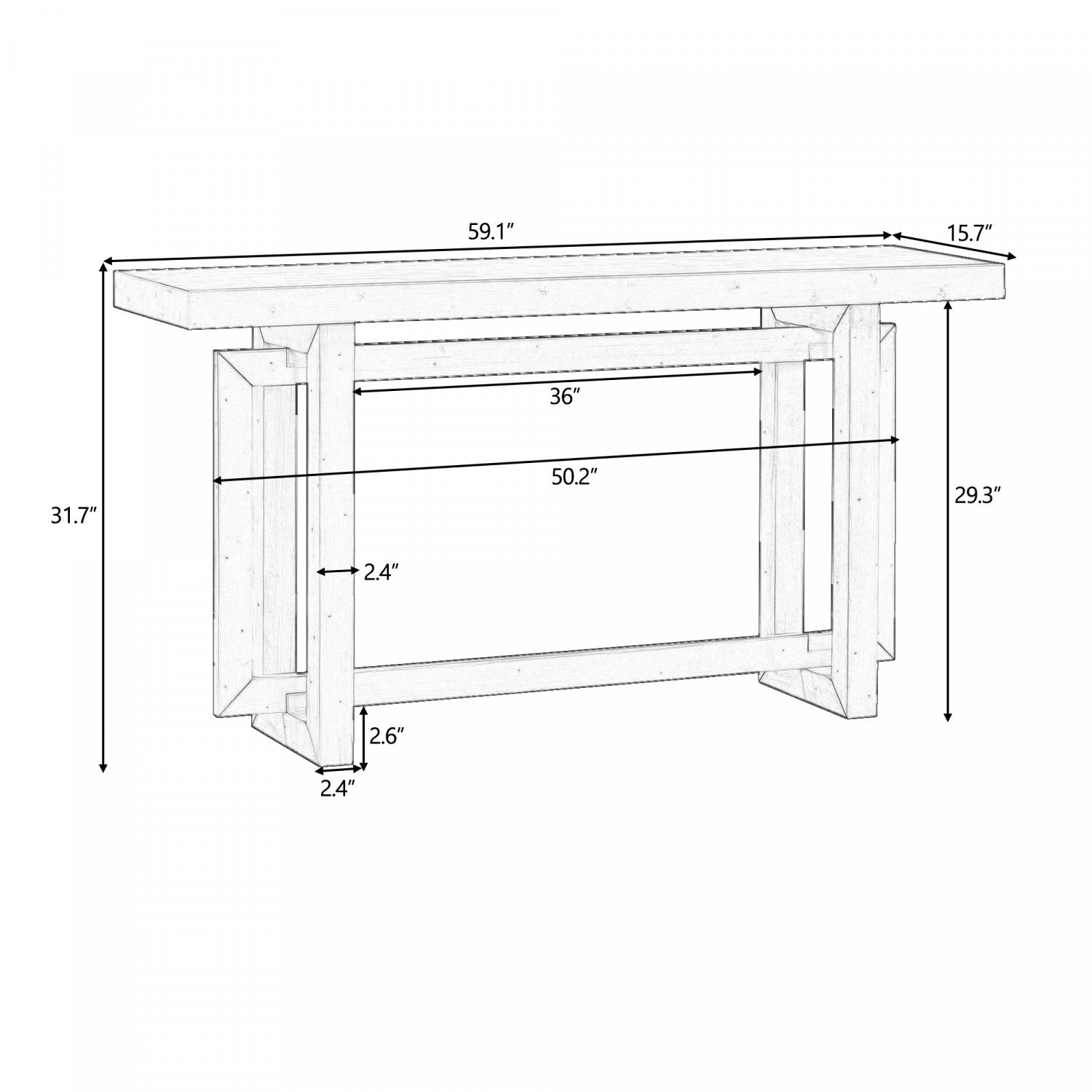 Ethan 59.1'' Triple Rectangle Design Painted Entryway Table with Pine Wood Legs,White Sofa Table