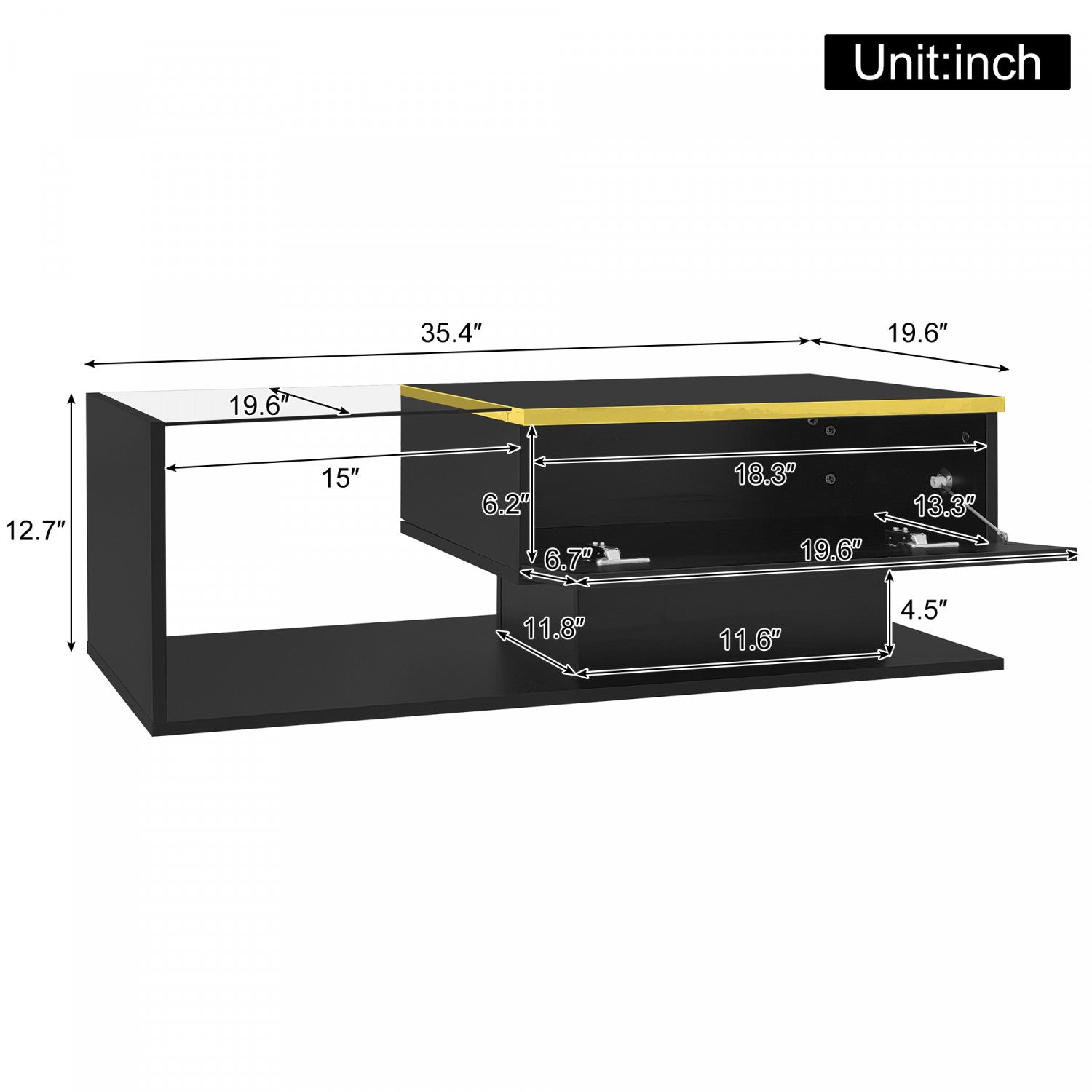 Width: 19.6" (49.8 cm) Height: 12.7" (32.3 cm) Depth: 35.4" (89.9 cm)