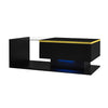 Ethan High-Gloss 35.4" Long Coffee Table with Glass and LED Effect,Black